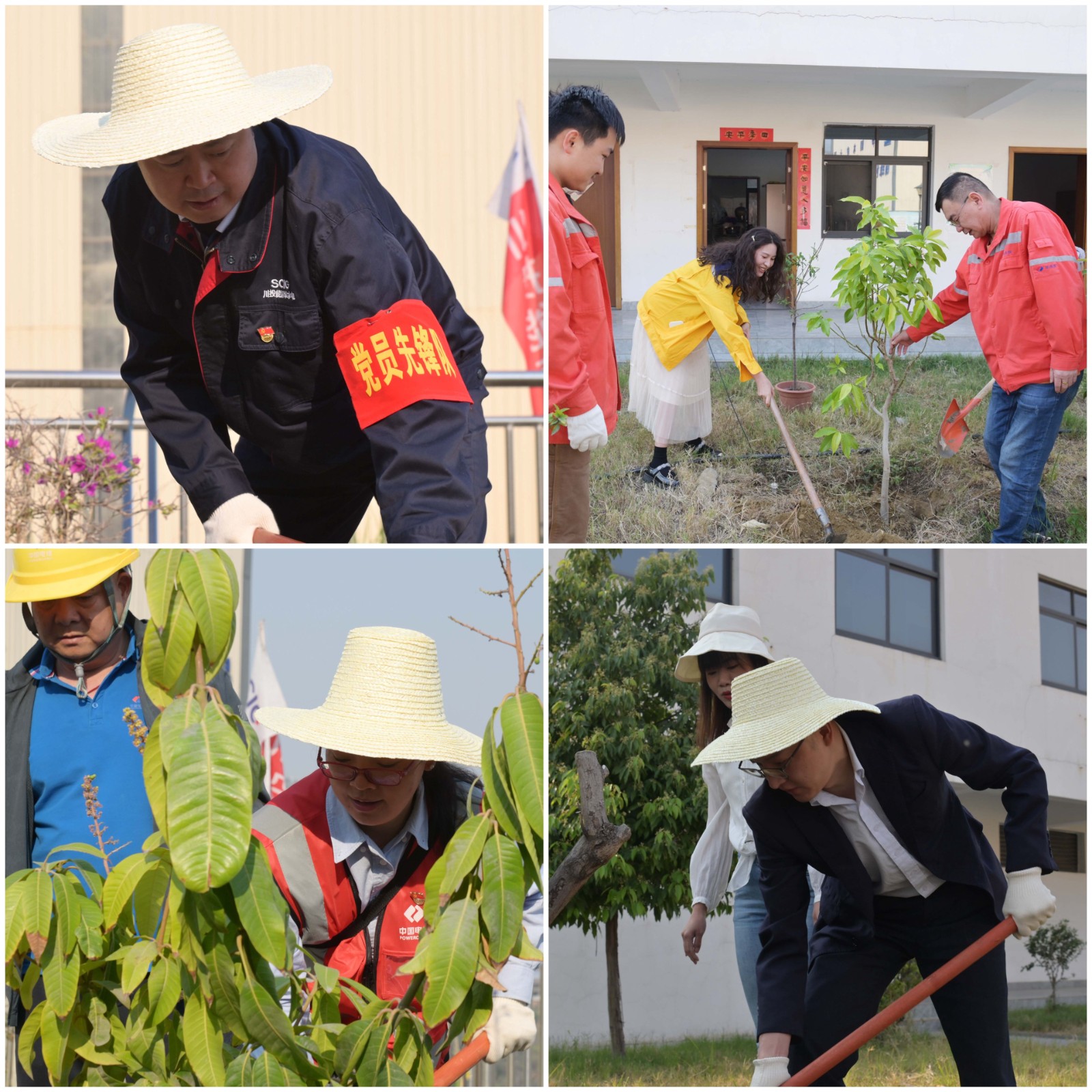 活动开始,各支部组织人员有序修整各自的责任田,去年种下的芒果树长势总体向好,大家首先对芒果树进行除草、松土、施肥、浇水;今年,公司为各支部准备了新的树苗,大家热情高涨,分工协作,挥锹铲土、挖坑栽树、填土浇水,经过一个多小时的忙碌劳作,石榴、蜜桃、柑橘、桂花、白玉兰等一棵棵新栽下的树苗昂然挺立,在春风中摇曳生姿,焕发着盎然绿意,为银江大党建宣传园地增添了鲜活的“绿动力”。