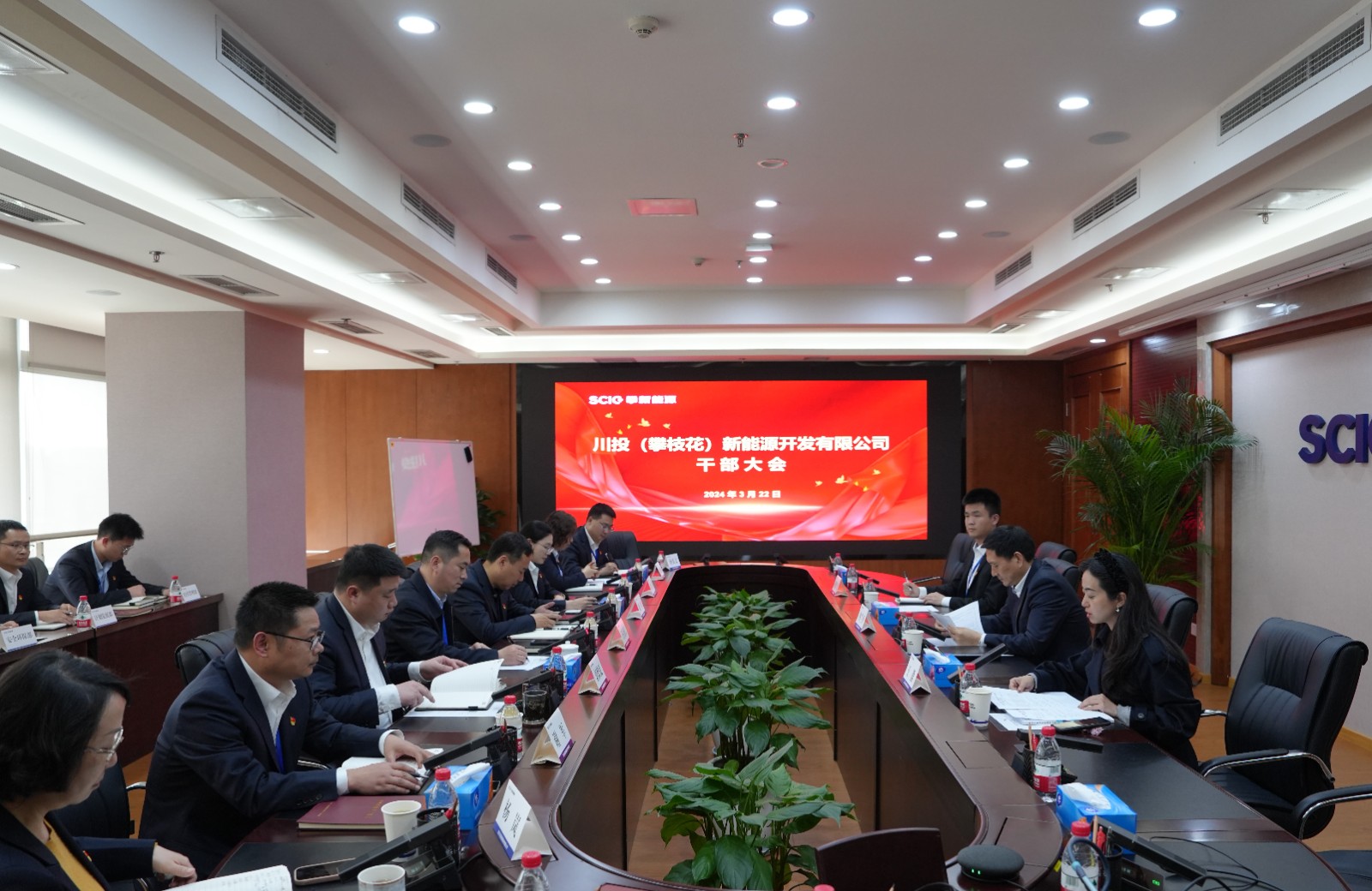 3月22日下午,川投(攀枝花)新能源开发有限公司在川投大厦1508会议室召开干部大会。黑料网 党委副书记、工会主席冉兰平出席会议并讲话,总经理助理、党委组织部/人力资源部经理王歆出席并主持会议,攀新能源公司党支部书记、董事长王行仁出席会议。