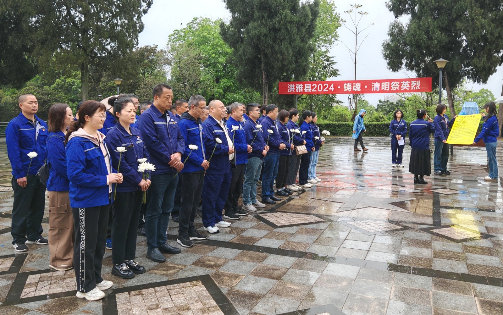迎着霏霏细雨,全体人员迈着缓缓的步伐来到烈士纪念碑前,大家神情肃穆,向烈士纪念碑敬献鲜花、致悼词、行默哀礼,在庄严肃穆的仪式中, 深切缅怀革命先烈,向革命先烈致以崇高敬意!