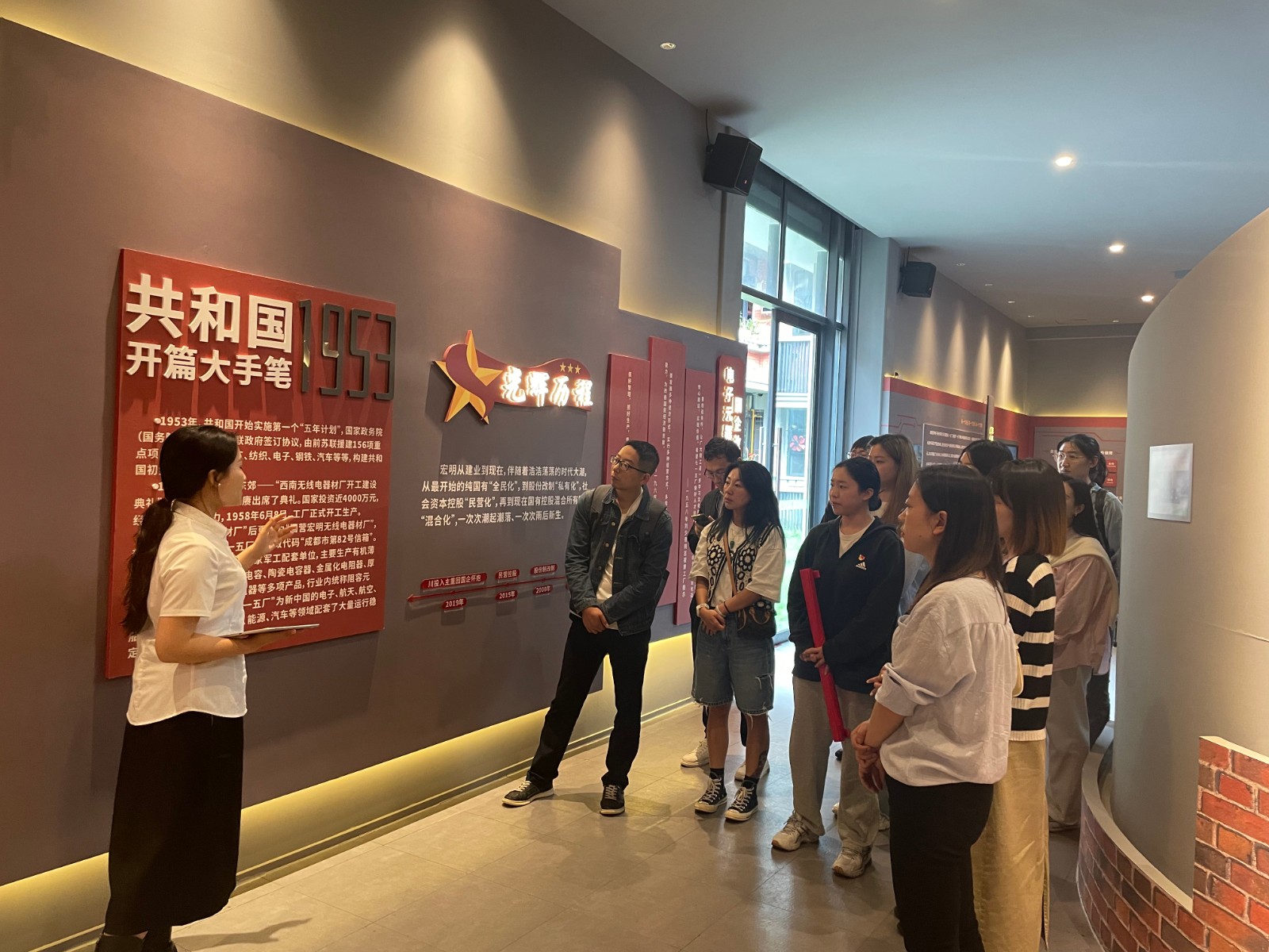 首先,团员青年们走进“宏明记忆”,一张张老照片、老物件在AR、VR等现代技术手段下活灵活现地呈现在大家眼前,带领大家走进了“宏明记忆”承载的红色历史和三线建设的艰苦岁月,为此次主题活动奠定了坚实的思想基础。