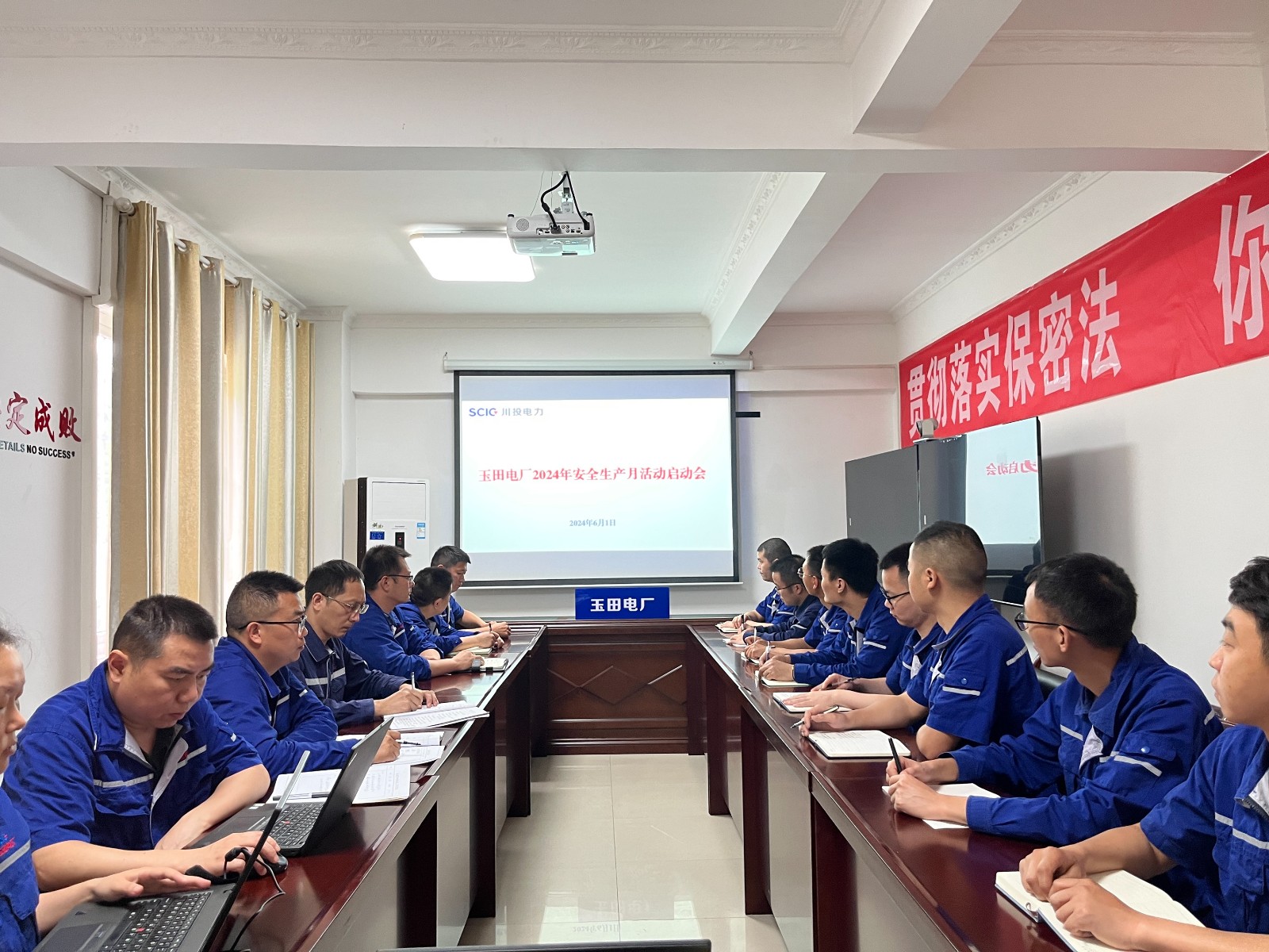 启动仪式首先由厂长叶劲驰传达学习四川能监办及川投电力等下发的关于开展2024年“安全生产月”活动的通知,组织全员观看安全生产月安全警示片并提出具体要求,一是全体员工严格贯彻落实安全活动月通知要求,细化任务,明确分工,确保组织到位、责任到位、落实到位;二是要深入开展安全事故警示教育,认真学习事故经验教训,举一反三,以案为鉴,深入反思查找存在问题和不足,坚决遏制发生类似事故。