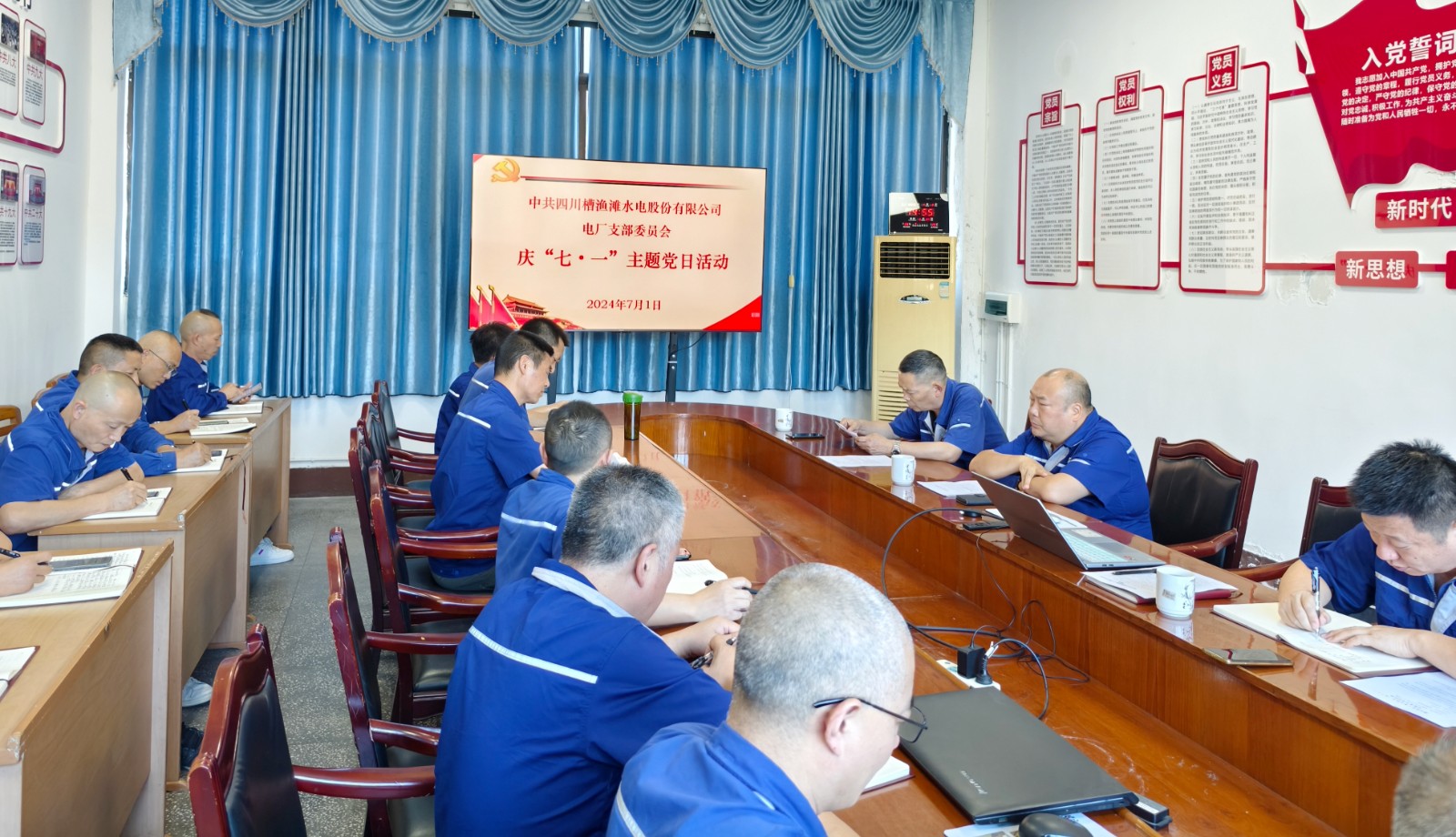 为切实增强党员干部的纪律意识,进一步弘扬伟大建党精神,凝聚奋斗力量,7月1日,槽渔滩公司电厂党支部开展“学党纪 守初心”主题党日活动。公司党支部书记、厂长王力生主持,支部23名党员参加活动。
