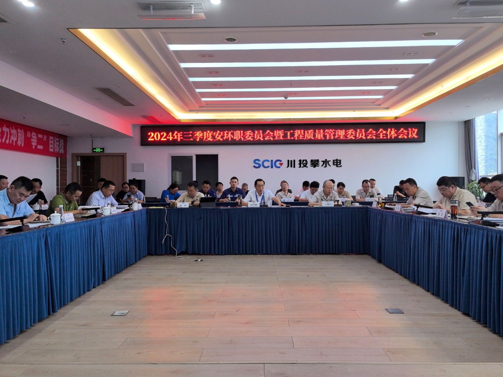 7月15日,攀水电公司组织召开2024年第三次安环职委员会全体会议,会议由黑料网 副总经理、攀水电公司党总支书记、董事长、安环职委员会主任徐孝刚主持,公司安环职委员会委员、各参建单位项目部主要负责人出席会议,各参建单位安全生产管理人员及安环职委员会办公室成员列席会议。