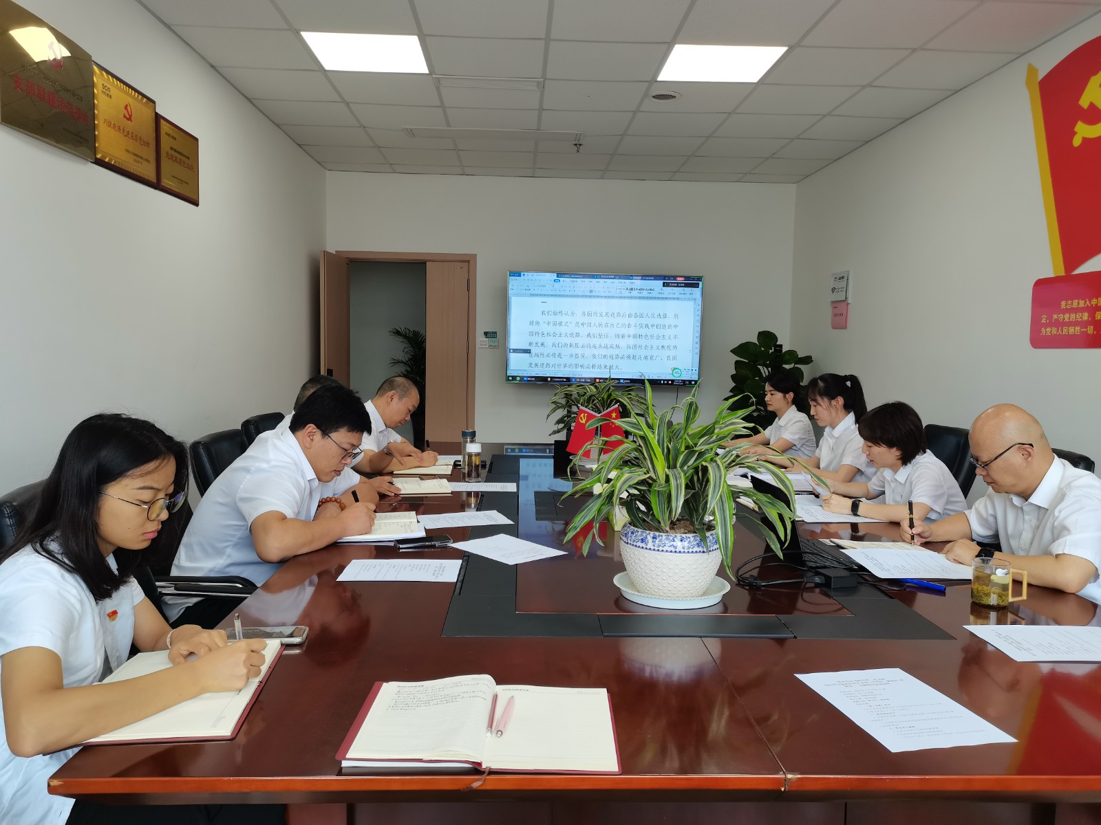 会议首先进行了第一议题学习,由支部书记周弋力领学了习近平总书记重要文章《必须坚持自信自立》;重点学习了中国共产党第二十届中央委员会第三次全体会议公报,传达了王晓晖在全省县域经济高质量发展推进会议上的讲话精神;随后,由支部书记讲授了《新修订<中国共产党纪律处分条例>解读》纪律党课,纪检委员盛诗棋进行《以案为镜鉴以廉为底线》案例剖析。参会党员紧扣党的六项纪律,结合自身实际情况逐一交流发言,分别从工作纪律、日常言行、家风家教等方面进行了研讨。最后,支部委员会向大会通报了支部党员发展相关情况。