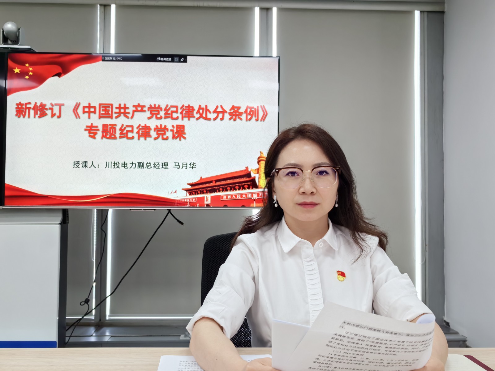 会上,川投电力副总经理马月华为支部全体党员讲授专题纪律党课。马月华主要围绕《中国共产党纪律处分条例》的历史沿革、修订概要和条文解读三个方面开展授课,并结合警示教育案例,通过“以案说纪、以案说规”警示广大党员以案为鉴,强化了全体党员干部对条例的理解和认识。马月华强调:一要坚守纪律底线,加强廉政建设。要时刻以党员的标准严格要求鞭策自己,时刻牢记党规党纪,自觉接受监督,守住红线底线。二要坚守政策底线,强化党员意识。强化责任意识,正确处理个人与组织的关系,坚决服从组织安排,积极主动完成党组织交办的任务。三要坚守道德底线,做到廉洁自律。坚持“勿以恶小而为之,勿以善小而不为”,时刻自重自省自警自励,遵守道德规范,遵守党的纪律,做到懂法纪、明规矩、知敬畏、存戒惧,筑牢拒腐防变的防线。
