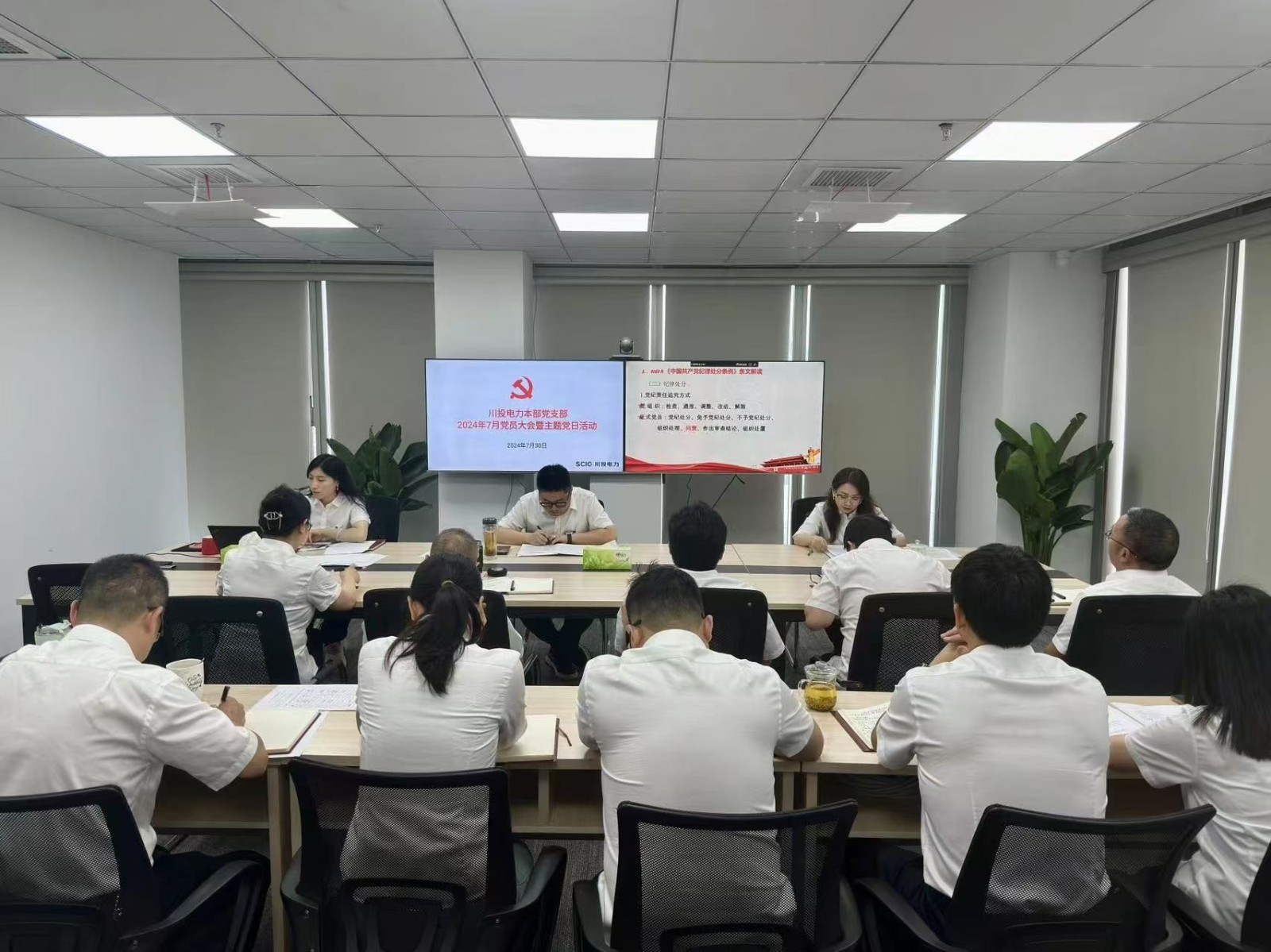 为贯彻落实习近平总书记关于全面加强党的纪律建设的重要论述,增强全体党员干部纪律意识、规矩意识,持续深化党纪学习教育,推动省委十二届五次全会精神落地落实,7月30日,川投电力本部党支部召开7月主题党日活动。会议由支部书记李天宏主持,支部全体党员、入党积极分子参加会议。