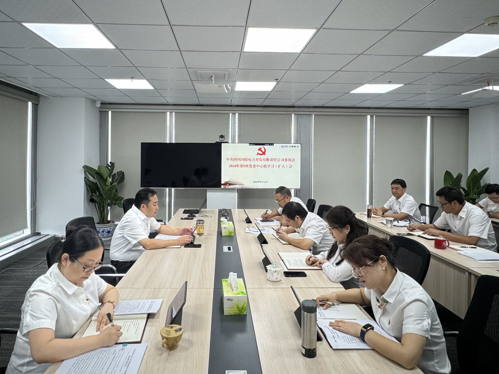 8月16日,川投电力党委召开中心组学习(扩大)会,专题传达学习党的二十届三中全会精神,研究贯彻落实措施。公司党委书记、董事长杨涛主持会议并讲话。