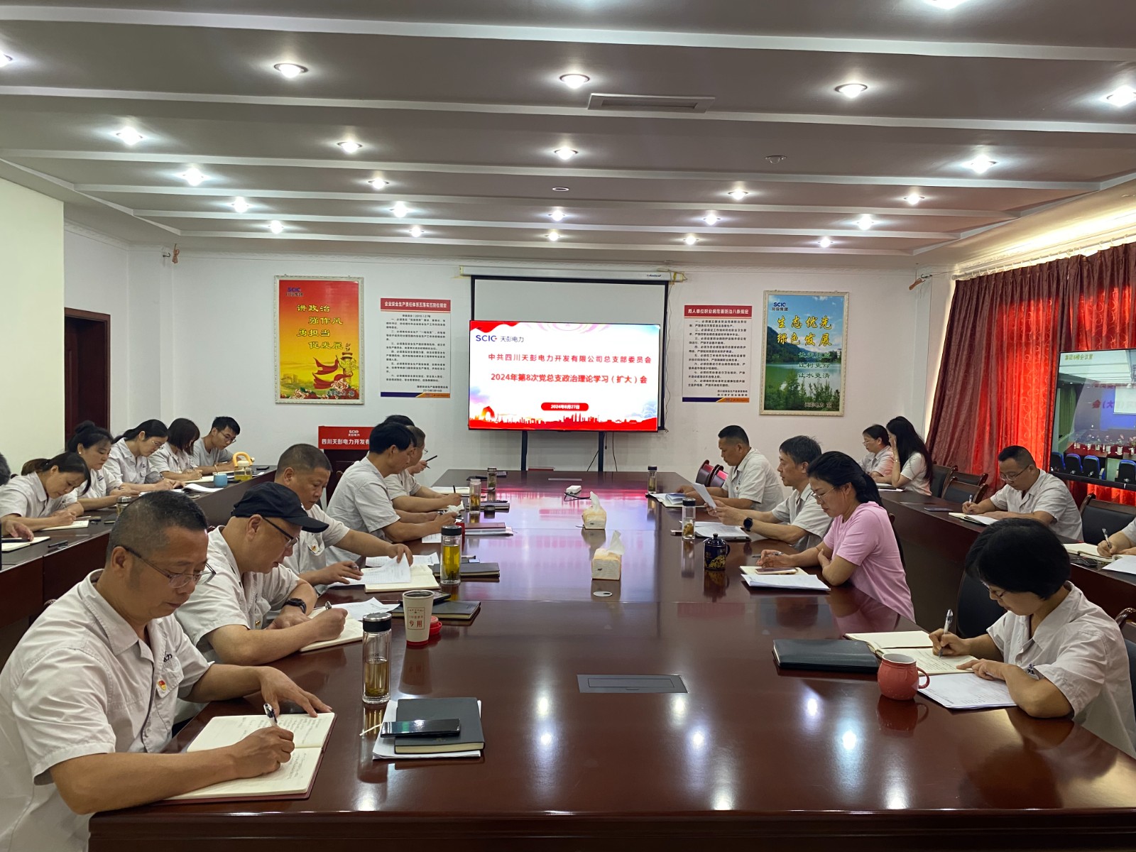 8月27日,天彭电力党总支召开2024年第8次政治理论学习(扩大)会,再次深入学习党的二十届三中全会精神,班子成员围绕“深学细悟全会精神,真抓实干推动发展”主题,结合各自分管领域和工作实际开展交流研讨。会议由公司党总支书记、执行董事、总经理刘红兵主持,公司领导班子、党员、干部、关键岗位人员参加学习会。