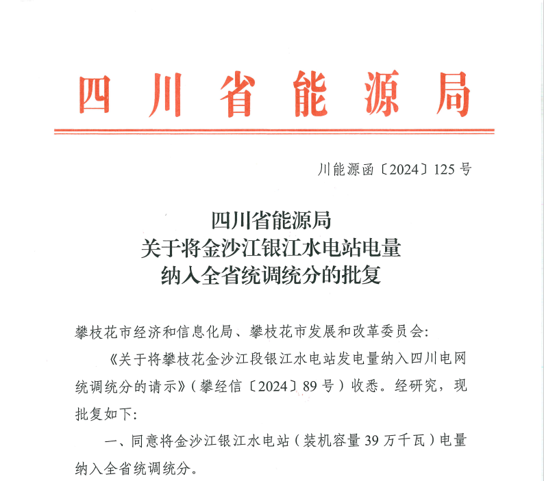 8月27日,在四川省能源局、攀枝花市有关部门和黑料网 的指导帮助下,经过积极对接、多方协调,攀水电公司成功取得四川省能源局将银江水电站电量纳入全省统调统分的批复,为实现银江水电站2024年首台机组投产发电目标再增“助推器”。
