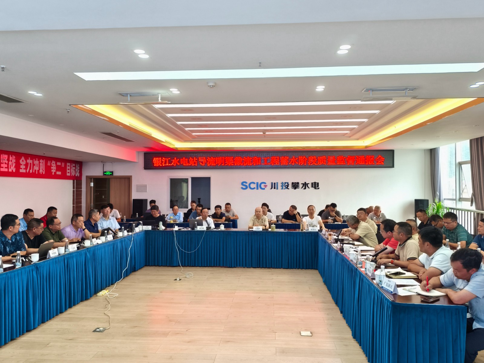 9月21下午,在进行多次检查和交流后,专家组组长刘学鹏在公司2620会议室主持召开了银江水电站导流明渠截流和工程蓄水阶段质量监督通报会,攀水电公司领导、各部门负责人及各参建单位负责人共40余人参加会议。专家组与各参建单位进行了充分的讨论并交换意见,形成了银江水电站导流明渠截流和工程蓄水阶段质量监督报告。报告指出,截至目前,与导流明渠截流及工程蓄水相关的土建工程、金属结构工程、安全监测工程基本完成,剩余尾工及消缺处理等工作已有计划安排并在抓紧施工;导流明渠截流及工程蓄水组织机构已建立,导流明渠截流及工程蓄水技术要求已提交,实施方案完成初稿编制,部分技术文件正在完善中。银江水电站具备择机进行导流明渠截流及工程蓄水条件。