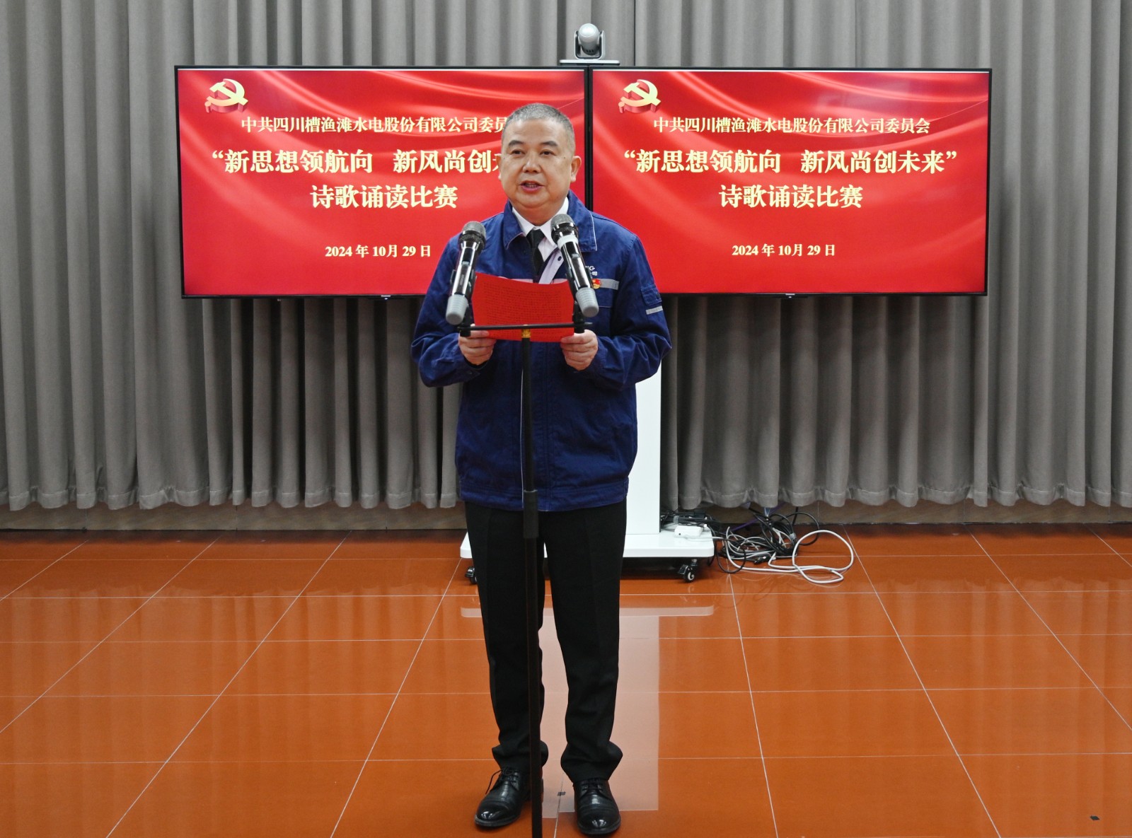 为深入贯彻党的二十届三中全会精神及省委十二届六次全会精神,激发全体党员职工爱党爱国、爱岗敬业的热情,10月29日上午,槽渔滩公司党委举办“新思想领航向、新风尚创未来”诗歌诵读比赛。川投电力党委副书记、工会主席杨鑫出席,槽渔滩公司党委书记、董事长何光富致辞。