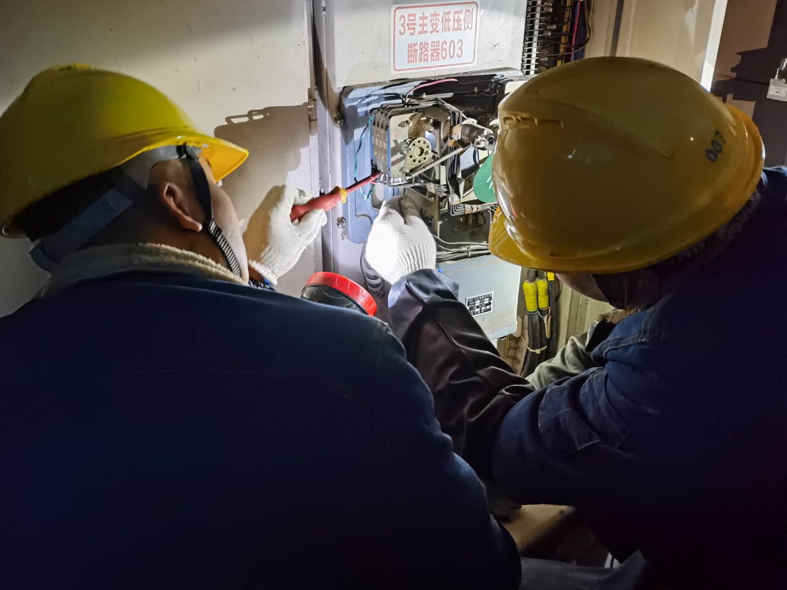 当日13时,各项准备工作和安全措施全部就绪,参与本次工作的运行操作、检修维护人员29人分5组迅速到位,在进行现场安全技术交底后,全体人员有序进入各自工作点位。12月份的山区气候异常寒冷,而检修现场却呈现出一派井然有序、热火朝天的劳动氛围,有的在清扫灰尘和污垢,有的在拧紧螺丝和检查接头,有的在测试和记录数据。经过近5小时争分夺秒的共同努力,凤鸣桥站和官田坝站6kv、10kv系统的屏柜及高压母线清扫,以及相应设备的检修维护工作圆满完成,17时26分机组恢复并网发电。