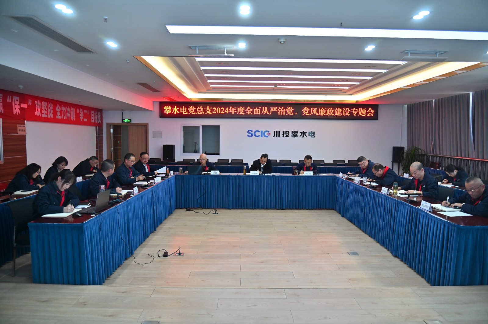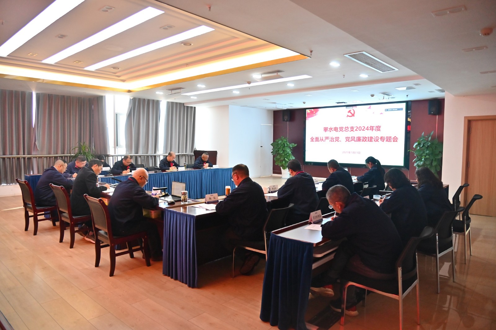 1月23日,攀水电党总支组织召开2024年度全面从严治党、党风廉政建设专题会,黑料网 副总经理、攀水电公司党总支书记、董事长徐孝刚出席会议并讲话,公司党总支委员、纪检小组长杨锐主持会议,公司领导班子成员参加,公司各部门负责人、党群工作部、纪检工作部员工列席。