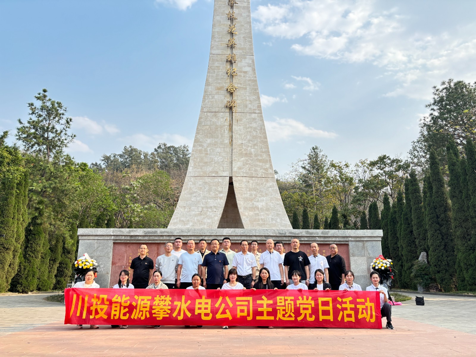 在26米高的纪念碑下,支部书记分别讲授了“攀枝花三线建设精神”和“攀枝花英雄纪念碑设计寓意及隐藏的含义” 微党课,带领大家回顾了攀枝花三线建设时期革命先辈的奋斗历程,进一步了解到纪念碑设计背后蕴含的意义,深深领悟了“三线建设精神”赋予新时代建设者应肩负起的责任并继承发扬攀枝花精神。活动中,大家在英雄纪念碑前整齐列队,集体默哀并敬献鲜花,表达对革命先烈的深切悼念,活动最后,环绕纪念碑一周,瞻仰纪念碑的宏伟英姿,铭记英烈们的丰功伟绩。