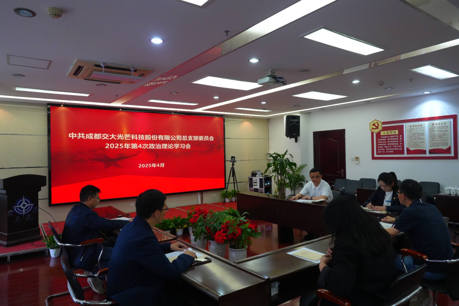 2025年4月27日至29日,交大光芒党总支召开2025年第4次政治理论学习会,深入学习贯彻习近平总书记关于加强党的作风建设的重要论述和中央八项规定及其实施细则精神等内容,会议由党总支书记、常务副总经理王涛主持,党总支委员及经营班子成员参加学习会。