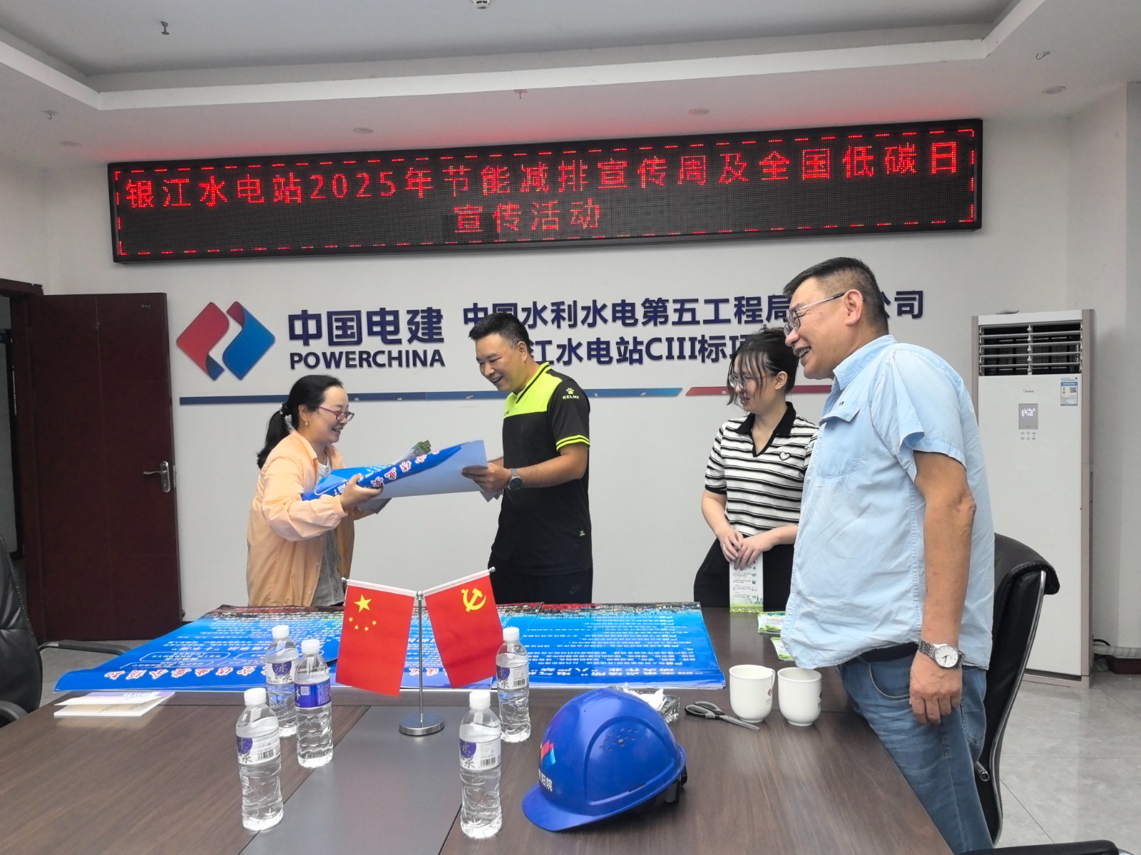 为进一步提升攀水电公司及银江水电站各参建单位的安全意识,营造浓厚的安全生产氛围,6月25日,攀水电公司组织开展了2025年安全生产月和全国低碳日宣传活动,攀枝花市东区发展和改革局、各参建单位代表共计20余人参加活动。