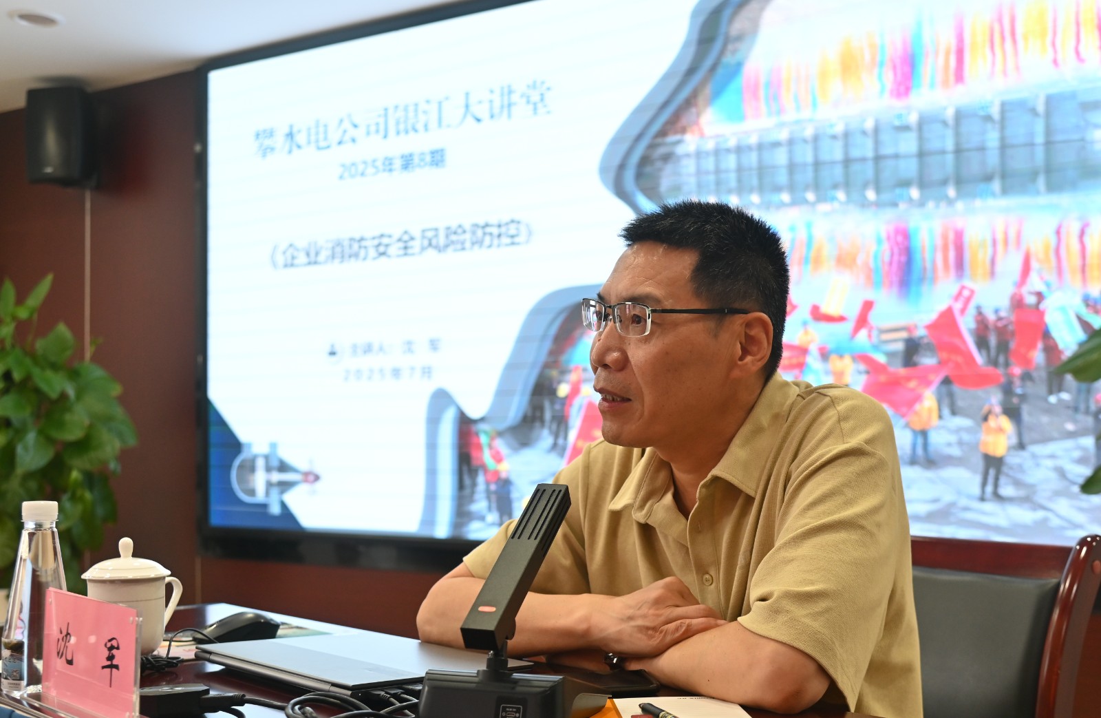 为切实提升全员消防应急处置能力,筑牢企业安全防线,7月27日,攀水电公司举办2025年第8期“银江大讲堂”,特邀四川省消防工作专家库资深专家、高级工程师沈军讲授企业消防安全风险防控知识,四川省消防救援总队攀枝花市支队周立波政委出席指导,公司领导、各部门员工、参建单位代表共计60余人参训。