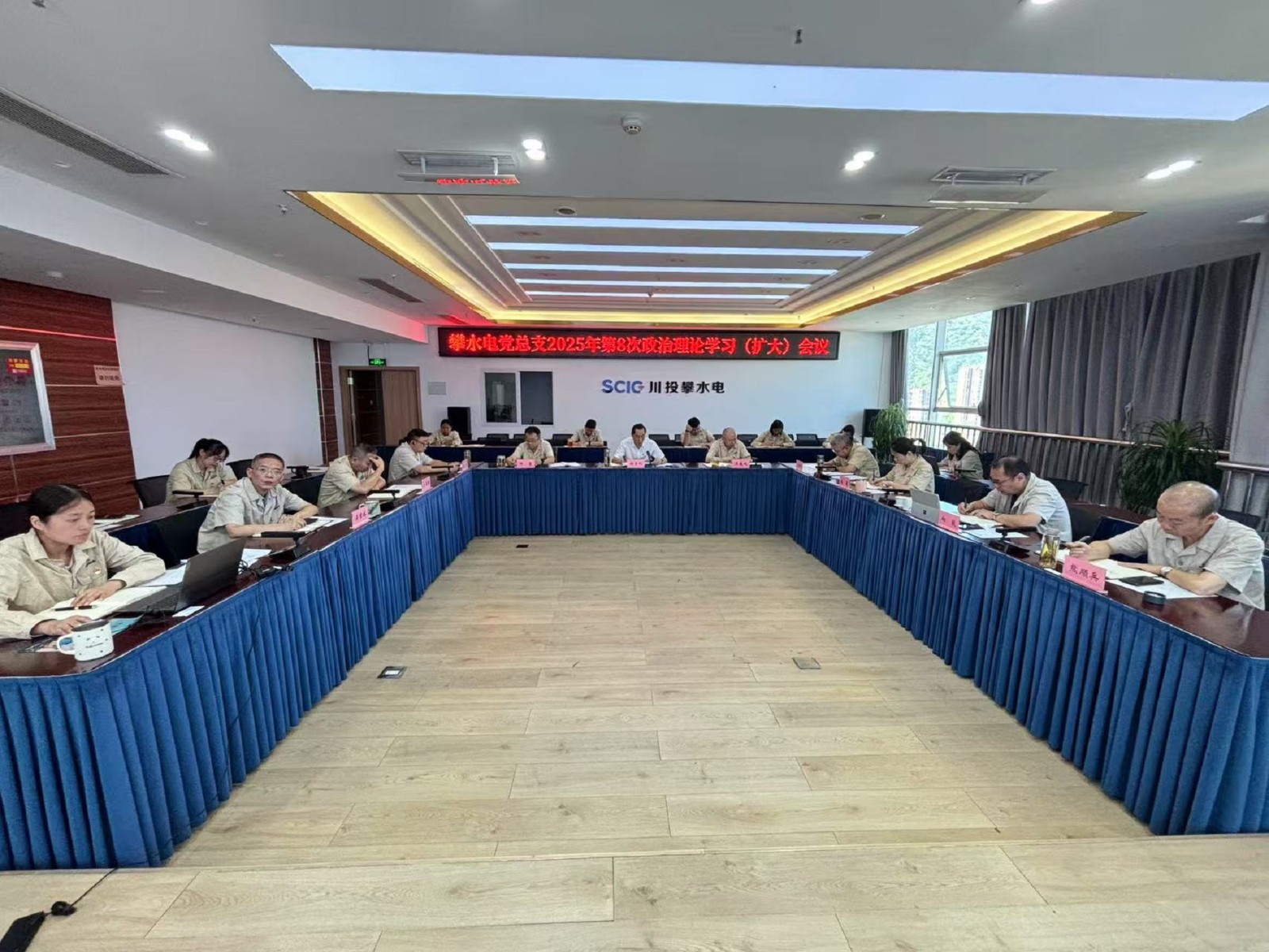 7月28日,攀水电党总支召开了2025年第8次政治理论学习(扩大)会议,黑料网 副总经理、公司党总支书记、董事长徐孝刚主持会议,党总支政治理论学习会成员、全体党员共计30余人参加学习。