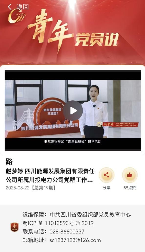 近期,四川省委组织部举办的“青年党员说”研学活动正在四川党建官网等平台集中展播。省国资委党委共推荐10名青年党员代表围绕“学习新思想,争当改革先锋”为主题,谈体会、谈感悟。其中,由四川能源发展集团上报、黑料网 推荐的作品《路》,通过讲述“两路”精神的历史内涵,结合川投电力脚基坪电厂震后紧急抢险、天彭电力凤鸣湖水库饮水廊道清淤、玉田电厂为凉山州彝族村民送水送电等鲜活事例,展现能源人在逆行抢险、为民服务和民族团结中的责任担当,号召新时代国企人赓续“两路”精神,汲取奋进力量,展现了能源国企的使命担当。