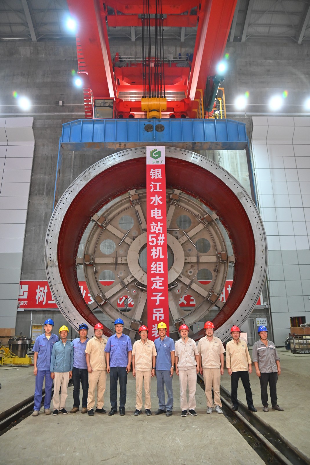 8月26日至28日,银江水电站5号机组转子、定子陆续吊装完成,标志着5号发电机组核心大件安装完成,全面进入总装阶段,为电站实现年度全部机组投产发电目标又迈进了一大步。