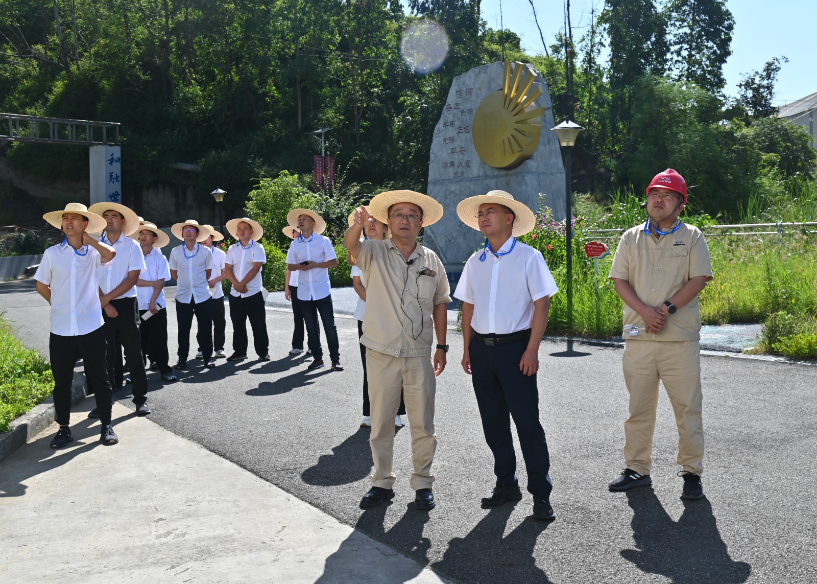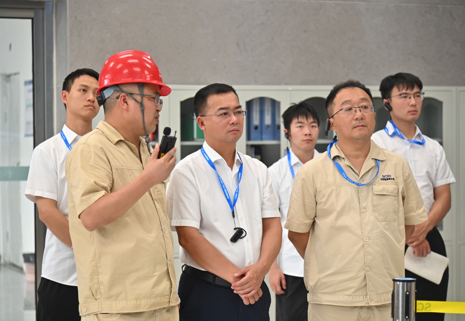 在银江水电站党建宣传阵地和工地现场,邓勇、严瑞平分别介绍了大党建和工程建设、生产经营相关情况,双方就党建引领工程建设、设备安装调试、水电站运营管理等内容进行了现场交流。