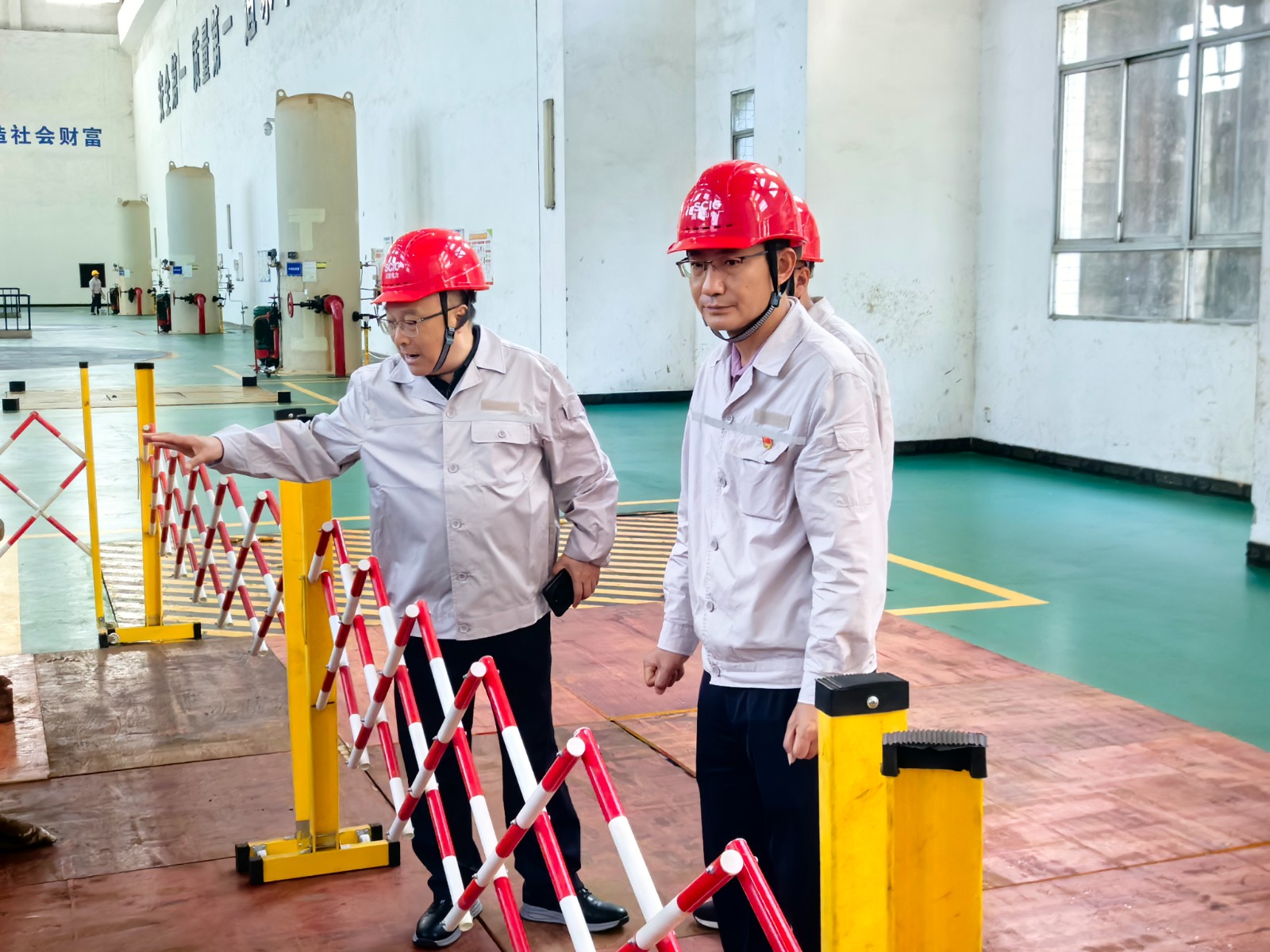 蔡承德一行深入生产一线,重点检查了大坝、防汛设施运行状况及发电机组、主变压器等核心设备工况,详细核查了设备巡检记录、隐患治理台账和应急预案等管理资料,并实地督导110KV出线间隔等关键设施的安全防护措施落实情况。在检查过程中,蔡承德详细询问了各电厂在“双节”期间的保供方案、人员值班安排及应急物资储备情况,对各电厂前期开展的设备隐患整改工作给予肯定。