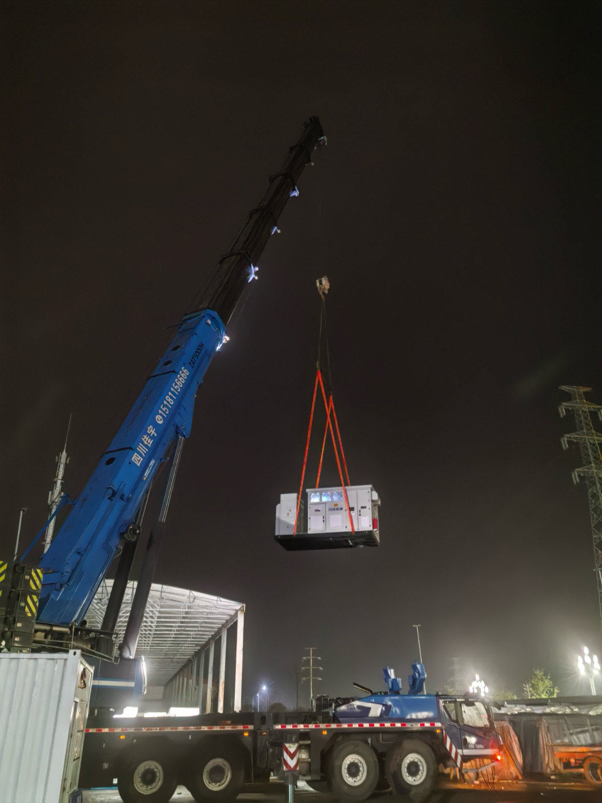 10月27日,四川时代60MW/120MWh工商业用户侧储能示范项目一期工程(以下简称“四川时代项目”)现场14台储能电池舱、11台综合计量舱及11台pcs升压一体舱全部吊装就位,标志着四川时代项目全面转入系统安装和调试阶段,为项目验收、并网调试奠定坚实基础。