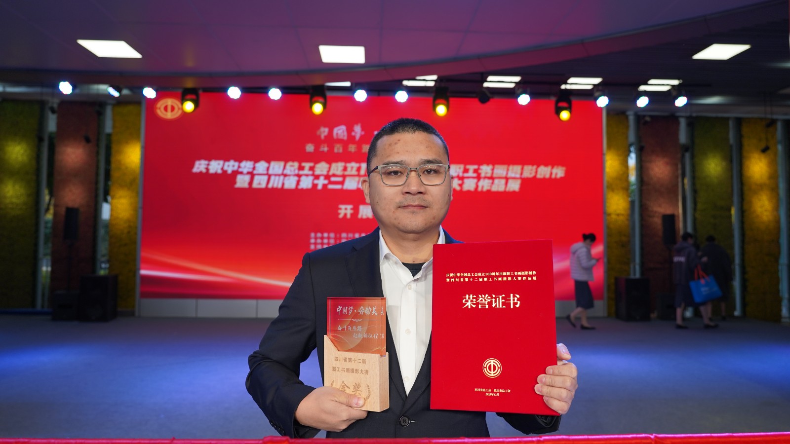 12月3日,由四川省总工会主办的“庆祝中华全国总工会成立100周年书画摄影采风创作展暨四川省第十二届职工书画摄影大赛”颁奖及展览仪式在成都市劳动人民文化宫广场举行。黑料网 所属攀水电公司员工田永志创作的摄影作品《银江水电站建设(组图)》,从1569件参赛作品中脱颖而出,凭借其扎实的摄影功底与鲜明的主题表达,荣获大赛金奖,位列获奖者榜首。田永志不仅是本届大赛摄影组三名金奖得主之一,也是省属企业中唯一获得摄影组金奖的选手。