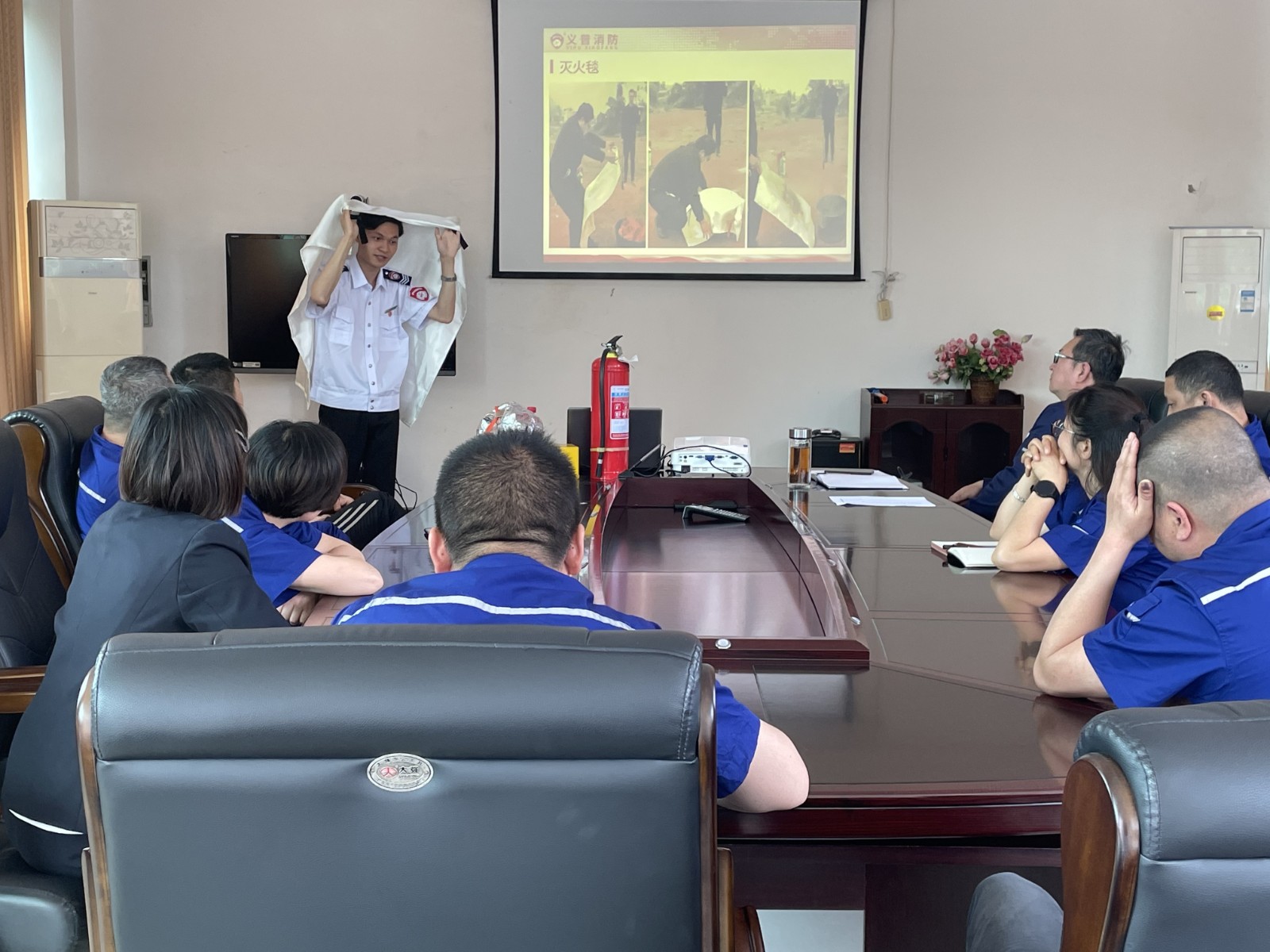 培训教官通过大量实际生活中的火灾案例,以视频、图片及文字的形式生动地阐述了普及消防安全知识、提升消防意识的重要性,同时从“防火、灭火、逃生、自救”四个方面详细介绍了火灾的形成过程、自救逃生的方法、灭火器的种类以及如何正确使用消防器材灭火。