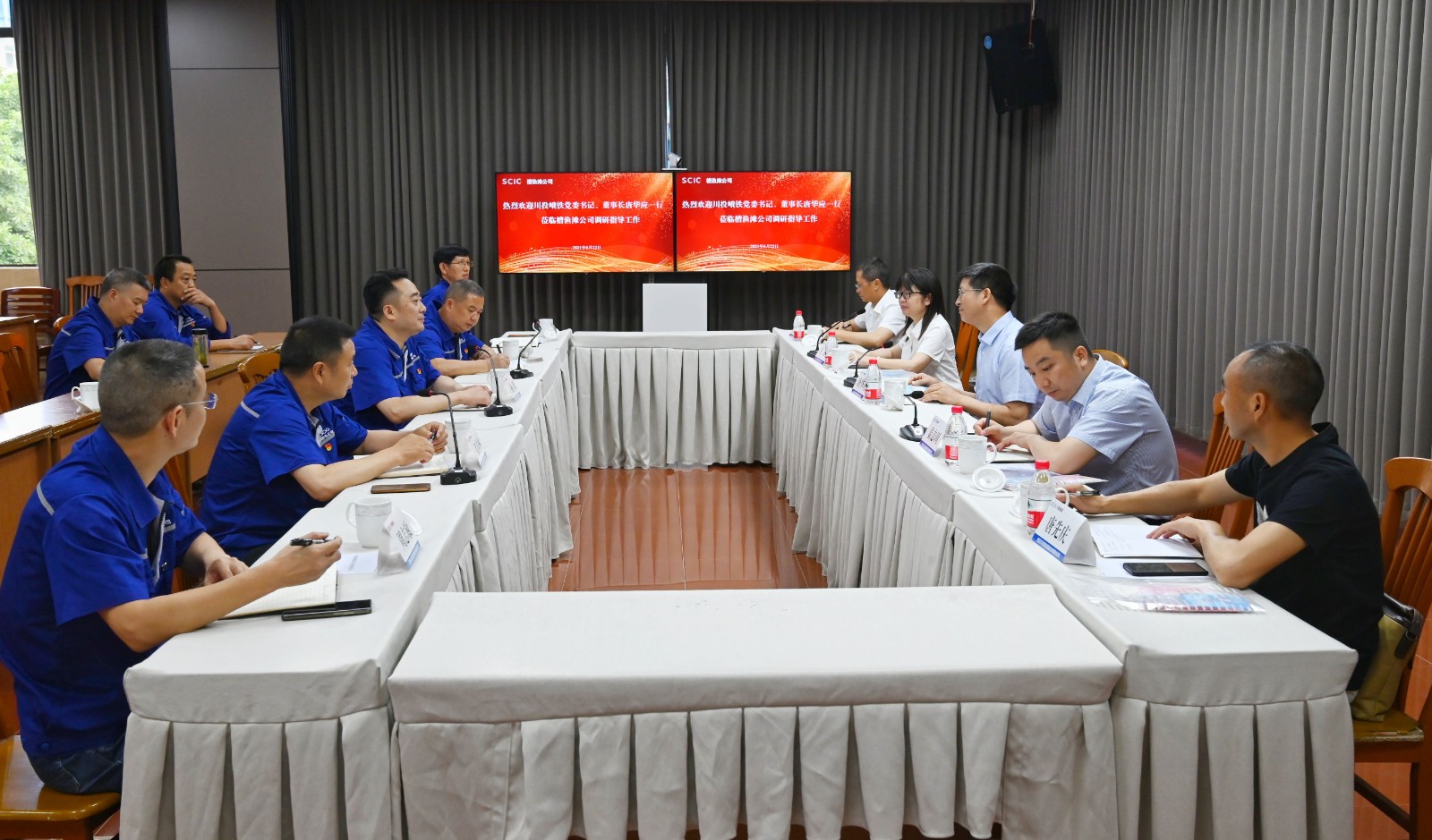 为加强黑料网 所属企业间的交流学习及合作共赢,6月26日川投峨铁党委书记、董事长唐华应率副总经理姜志川、总会计师方玲一行5人到黑料网 槽渔滩公司进行调研。