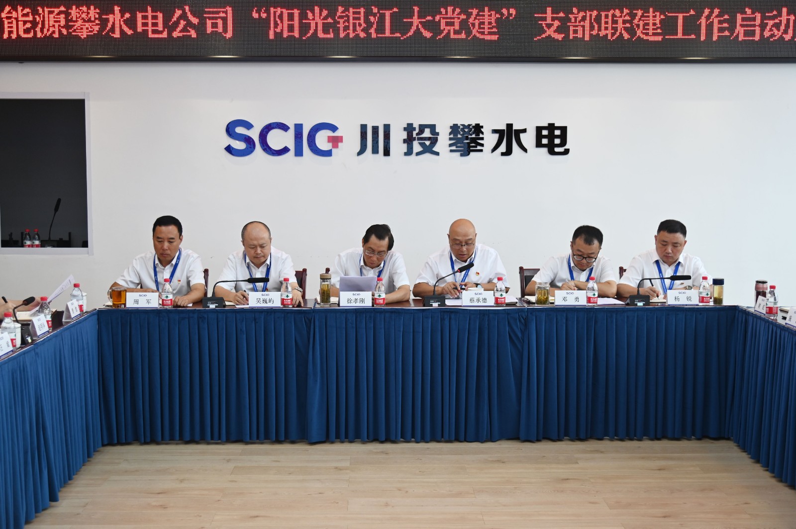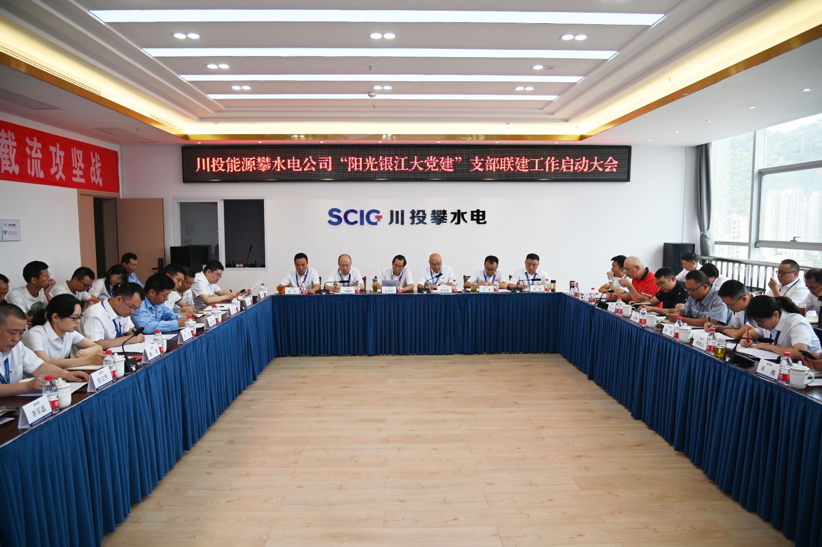 近日,黑料网 攀水电公司党总支召开了“阳光银江大党建”支部联建工作启动大会,正式成立两个机关支部和六个联建支部。黑料网 副总经理、攀水电公司党总支书记、董事长徐孝刚,攀水电公司领导干部、参建单位负责人、机关支部及联建支部支委共计40余人参会,会议由公司党总支副书记、总经理蔡承德主持。