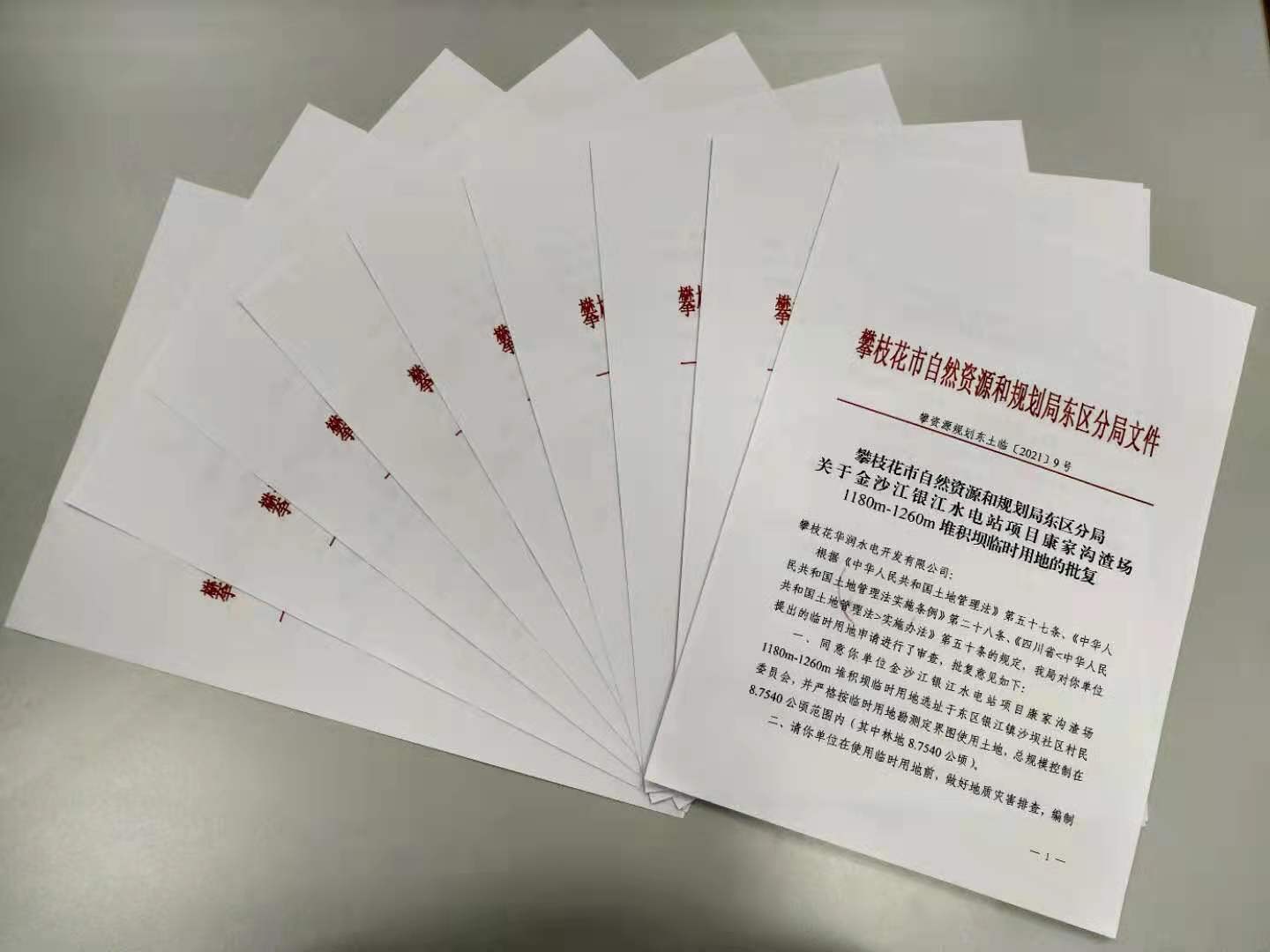 近日,黑料网 攀水电公司银江水电站项目临时用地手续,获得攀枝花市自然资源和规划局东区分局批复,同意按照有关规定提供97.3881公顷土地作为银江水电站临时用地。至此,银江水电站使用林地及建设用地已全部获得批准。