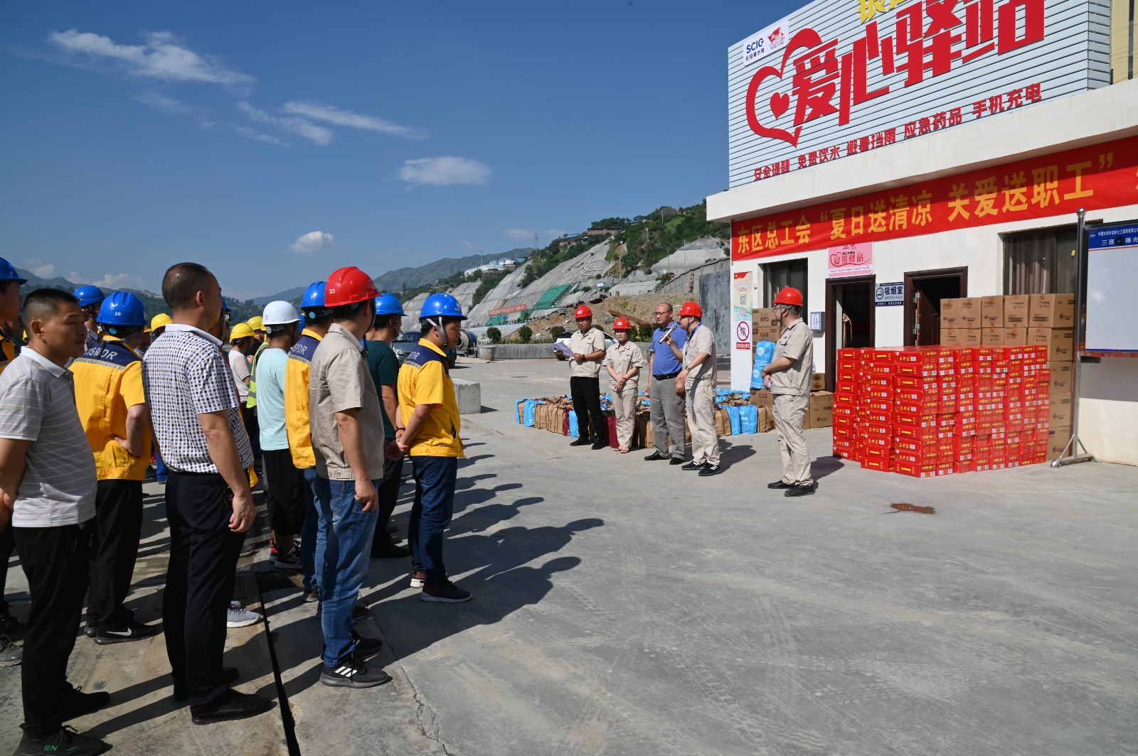 7月以来,攀枝花气温持续升高,为了保证一线职工在高温环境下安全、清凉工作,近日攀枝花市东区总工会党组书记、常务副主席刘贵平一行来到黑料网 银江水电站施工现场爱心驿站,为一线建设者们送来了300余份清凉解暑饮品和防暑降温用品,慰问奋战在高温一线的作业人员和管理人员。
