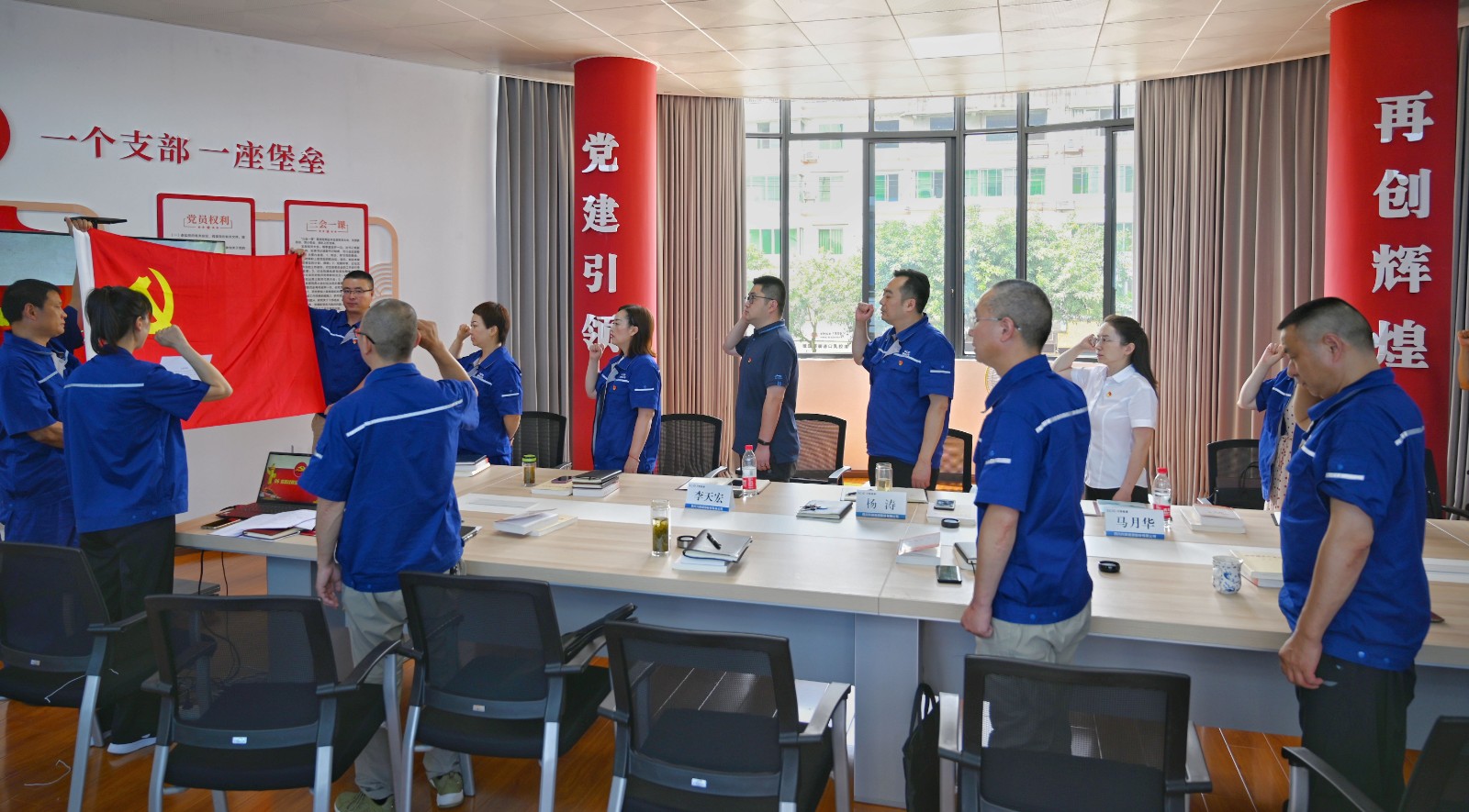 最后,全体党员还集体过了政治生日,面对鲜红的党旗,重温了入党誓词。