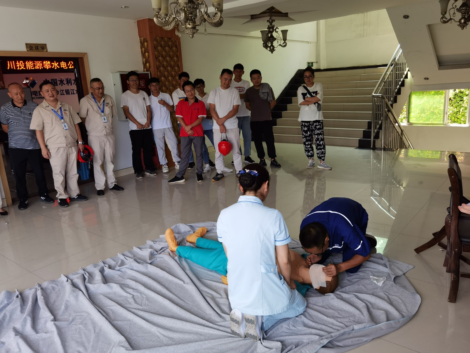 为加强银江水电站应急建设,普及参建人员医疗急救技能,近日,黑料网 攀水电公司特邀攀枝花市中西医结合医院急救专家及急救工作人员开展现场医疗救治培训。
