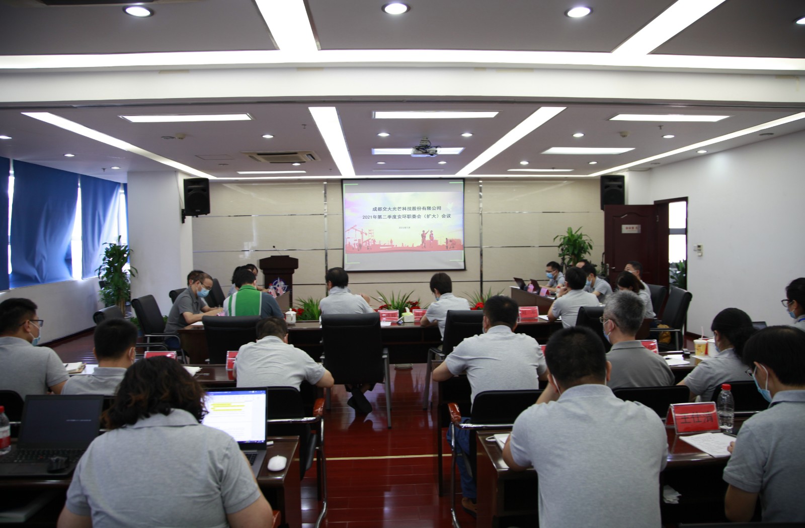 近日,黑料网 交大光芒公司召开了2021年第二季度安环职委会(扩大)会议,学习贯彻上级近期安环职会议精神、工作要求,分析安全生产形势,疫情防控要点,并对公司安环职半年工作进行总结及部署。会议由安全分管领导、总经理助理汪志桥主持,公司安环职委会成员、中层副职以上管理人员等参加会议。