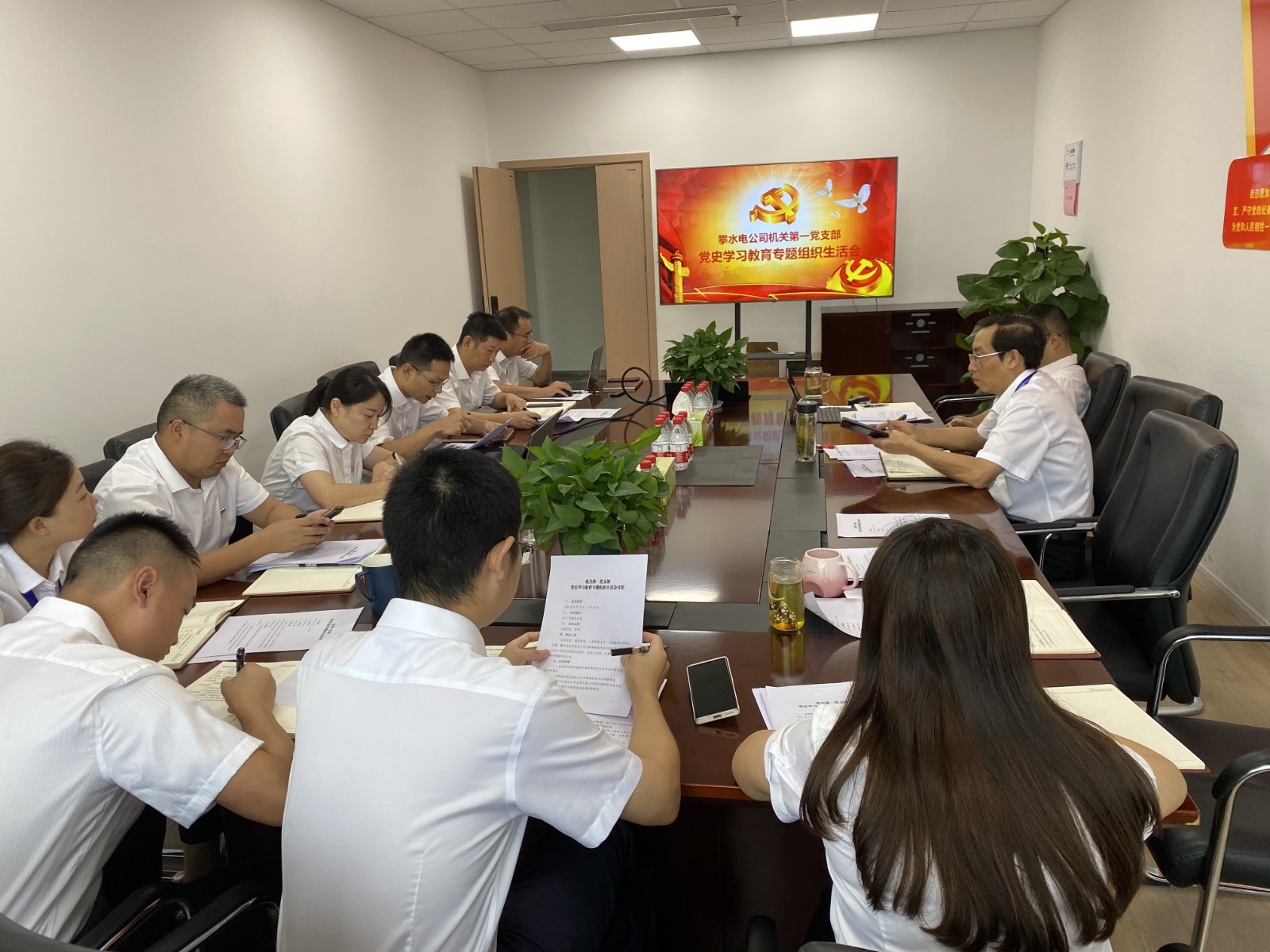 为认真贯彻“学史明理、学史增信、学史崇德、学史力行”要求,交流学习体会,查找差距不足,8月18日上午及8月20日下午,攀水电公司机关第一党支部组织召开党史学习教育专题组织生活会。会议由支部书记李伟主持,黑料网 公司副总经理、攀水电公司党总支书记徐孝刚作为黑料网 联系攀水电公司领导列席会议指导,同时作为支部普通党员参加会议。公司党总支委员、工会主席、董事会秘书邓勇,副总经理周军以普通党员身份参加会议。