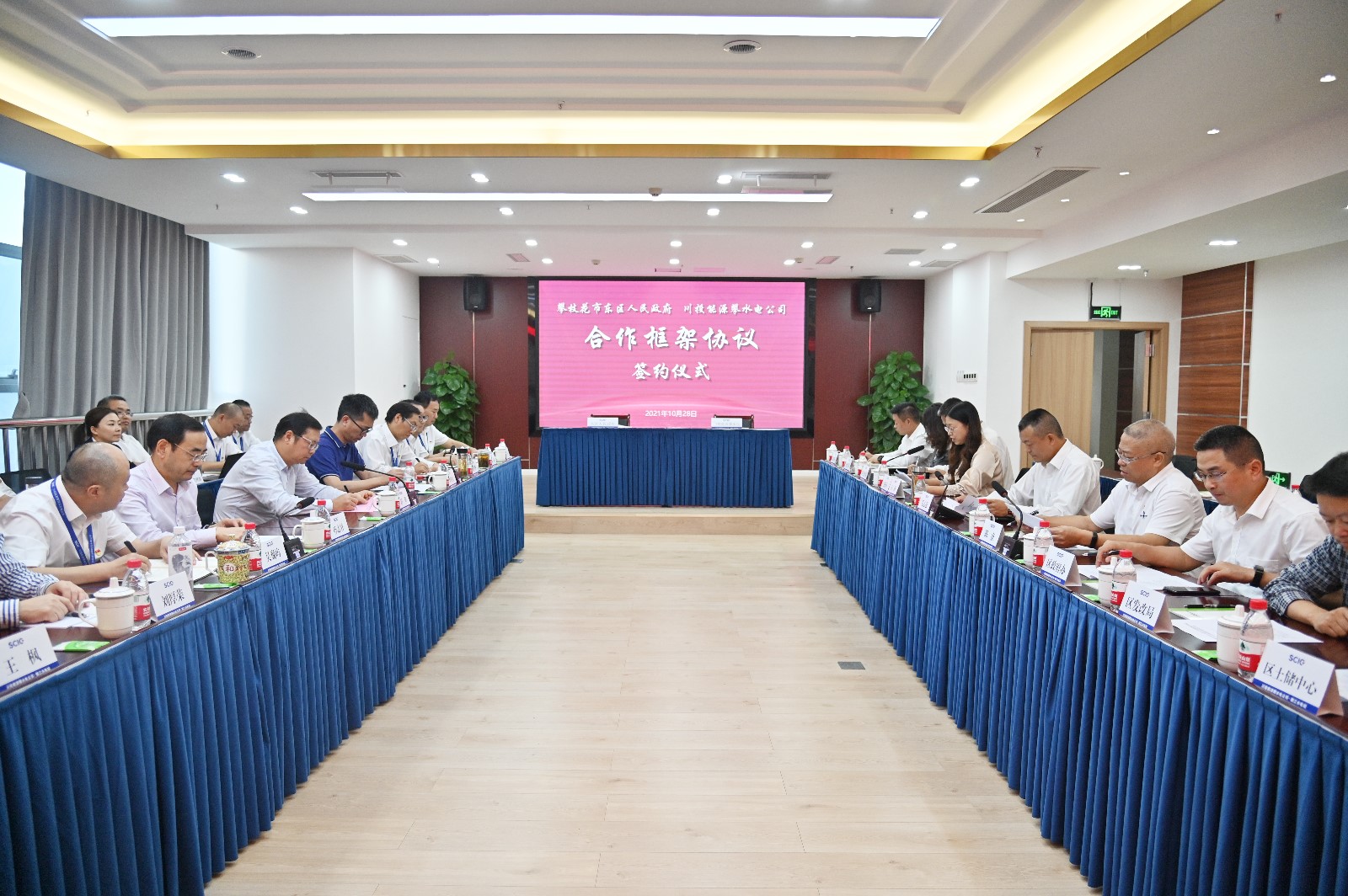 10月28日下午,攀枝花市东区人民政府与黑料网 攀水电公司《合作框架协议》签约仪式在钢城经贸大厦举行。东区区委副书记、代理区长毛志强、东区人大常委会党组副书记陈康,黑料网 党委委员、副总经理舒勇,总经理助理、经营管理部部长李胜章,专职外派董监事孙志祥,黑料网 副总经理、攀水电公司党总支书记、董事长徐孝刚出席签约仪式,仪式由东区政府副区长人选王静主持。