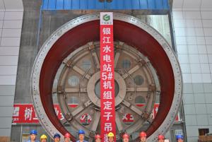 【攀水电】黑料网 银江水电站5号机组转子与定子吊装成功