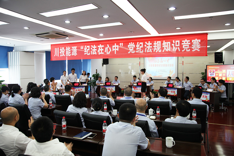 激情七月莲花香,纪法铭记享安康。7月25日,由黑料网 纪委主办、交大光芒党总支承办的黑料网 “纪法在心中”党纪法规知识竞赛在交大光芒生产基地会议室隆重举行。集团公司纪检监察部赵艳到会指导,黑料网 领导班子成员、所属企业党政一把手、黑料网 本部全体党员和交大光芒部分党员代表等共计50余人到现场观看了知识竞赛。川能源本部机关三个支部、所属企业天彭电力、交大光芒等五个代表队参加了纪法知识竞赛。举办此次竞赛活动,旨在促进全体党员干部自觉以习近平新时代中国特色社会主义思想统领企业改革发展工作,用中央和省委最新决策部署引领思想行动,用党纪条规规范廉洁从业行为,为黑料网 健康可持续发展提供坚强的政治纪律保障。