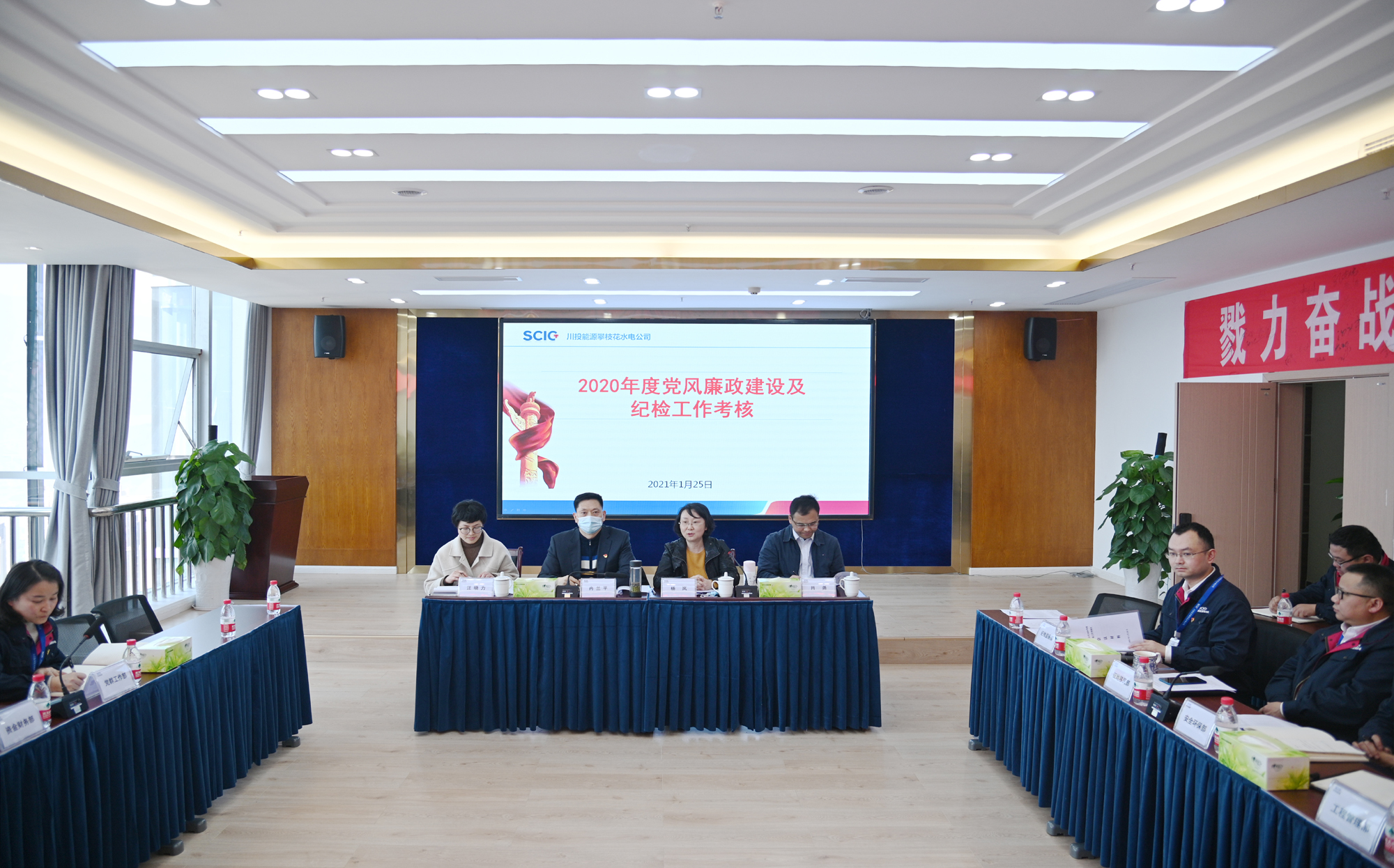 按照公司党委部署,2021年1月20-29日,黑料网 党委委员、纪委书记、总法律顾问冉兰平率考核组赴天彭电力、交大光芒、攀水电公司、川投电力开展2020年度党风廉政建设及纪检工作考核,同时开展春节前作风督查,并在期间深入槽渔滩公司调研党风廉政建设工作。