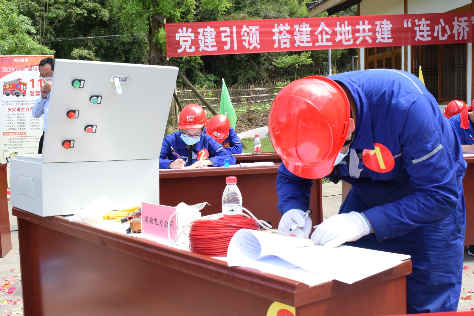 随后,黑料网 党委副书记、工会主席冉兰平宣布比赛开始。6家电力企业、18名参赛选手在全场观众的欢呼声中走入赛场,围绕电厂安全操作和防洪防汛,按照电厂组接线图编写标准操作步骤,运用现场设备清单设计防洪警铃并组装防洪报警箱,在操作票填写、电气原理图设计、配线安装调试三个项目上逐一“捉对厮杀”,笔试项目运笔如飞、实操项目挥汗如雨,力求展现自身最高技能水平和最美职业风采。经过近2个小时的激烈角逐,川投电力代表队脱颖而出,荣获一等奖;槽渔滩公司、天全胜利电力获二等奖;天彭电力、大唐雅安公司、天全长河水电获三等奖。