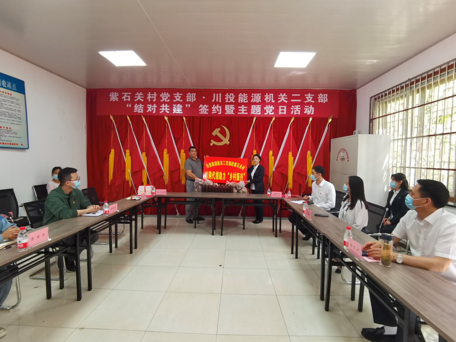 日前,黑料网 机关二支部赴紫石关村开展“结对共建”签约暨主题党日活动,现场签订《企地党支部结对共建协议书》,向紫石关村党支部赠送精心挑选的党建类书籍,聆听红色“微党课”,重温入党誓词,并开展“以购代捐”助力乡村振兴帮扶活动。公司党委副书记、工会主席冉兰平,喇叭河镇党委副书记苏世杰全程参加。企地双方支部党员共计22人参加活动。