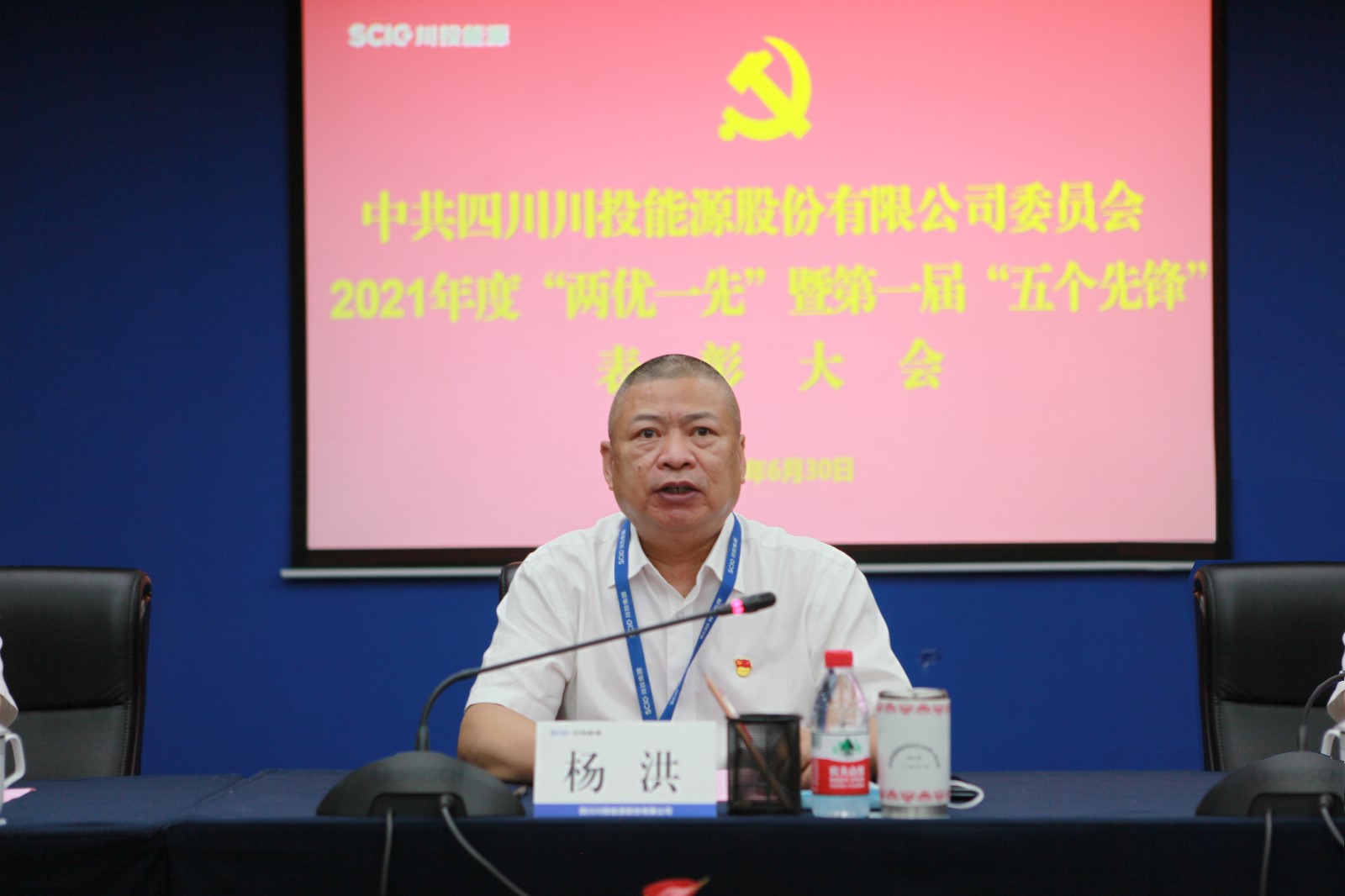 为深入学习贯彻习近平总书记来川视察重要指示精神,热烈庆祝中国共产党成立101周年,表彰公司改革发展中涌现出的优秀党员、优秀党务工作者、先进基层党组织和“五个先锋”,6月30日,黑料网 党委召开黑料网 2021年度“两优一先”暨第一届“五个先锋”表彰大会。公司党委书记、副董事长、总经理杨洪出席并讲话,党委副书记、工会主席冉兰平主持会议。
