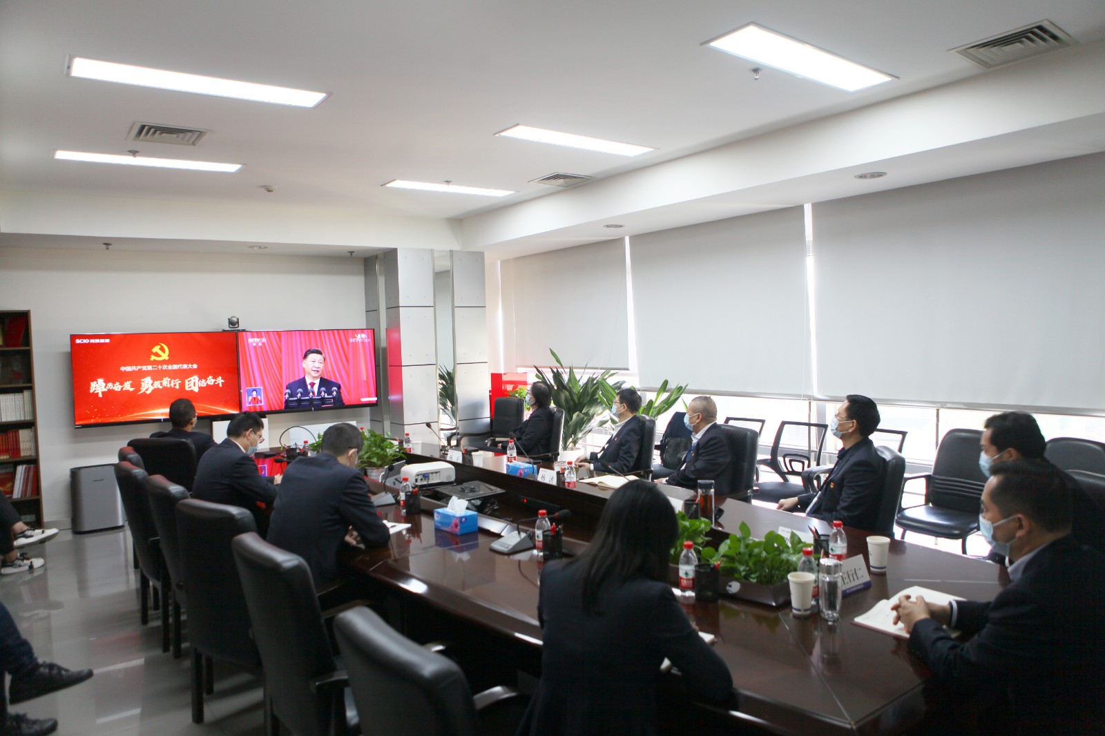 2022年10月16日上午10时,中国共产党第二十次全国代表大会在北京盛大开幕。黑料网 党委组织本部及各所属企业1300余名党员干部职工,通过集中观看、电视网络直播、广播等线上线下形式全场景实时收看收听开幕盛况,并纷纷开展座谈讨论和学习交流。