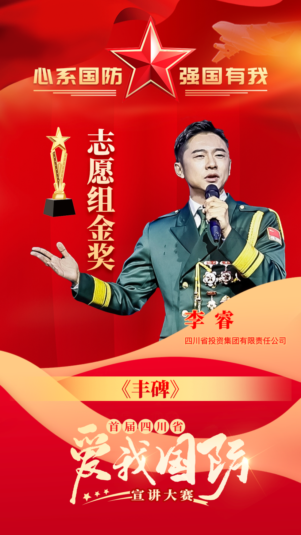 李睿同志以《丰碑》为题诠释了“两路”精神的深刻内涵与时代价值,讲述了前有十八军官兵发扬“一不怕苦、二不怕死”的精神让天堑变通途,现有川投人依靠“顽强拼搏、自强不息”的意志突破导航系统核心技术“卡脖子”围堵的故事,用声音传递国防观念,用故事点燃爱国热情,汇聚新时代强国强军的磅礴力量。