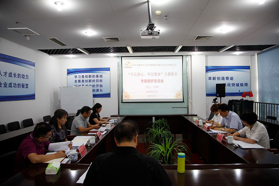 按照中央、省委、集团党委和黑料网 党委关于开好“不忘初心、牢记使命”专题民主、组织生活会的统一部署,9月6日,交大光芒党总支班子召开专题组织生活会。黑料网 党委委员、纪委书记冉兰平到会指导,纪委办主任杨岚、党群部谢丽参加会议。