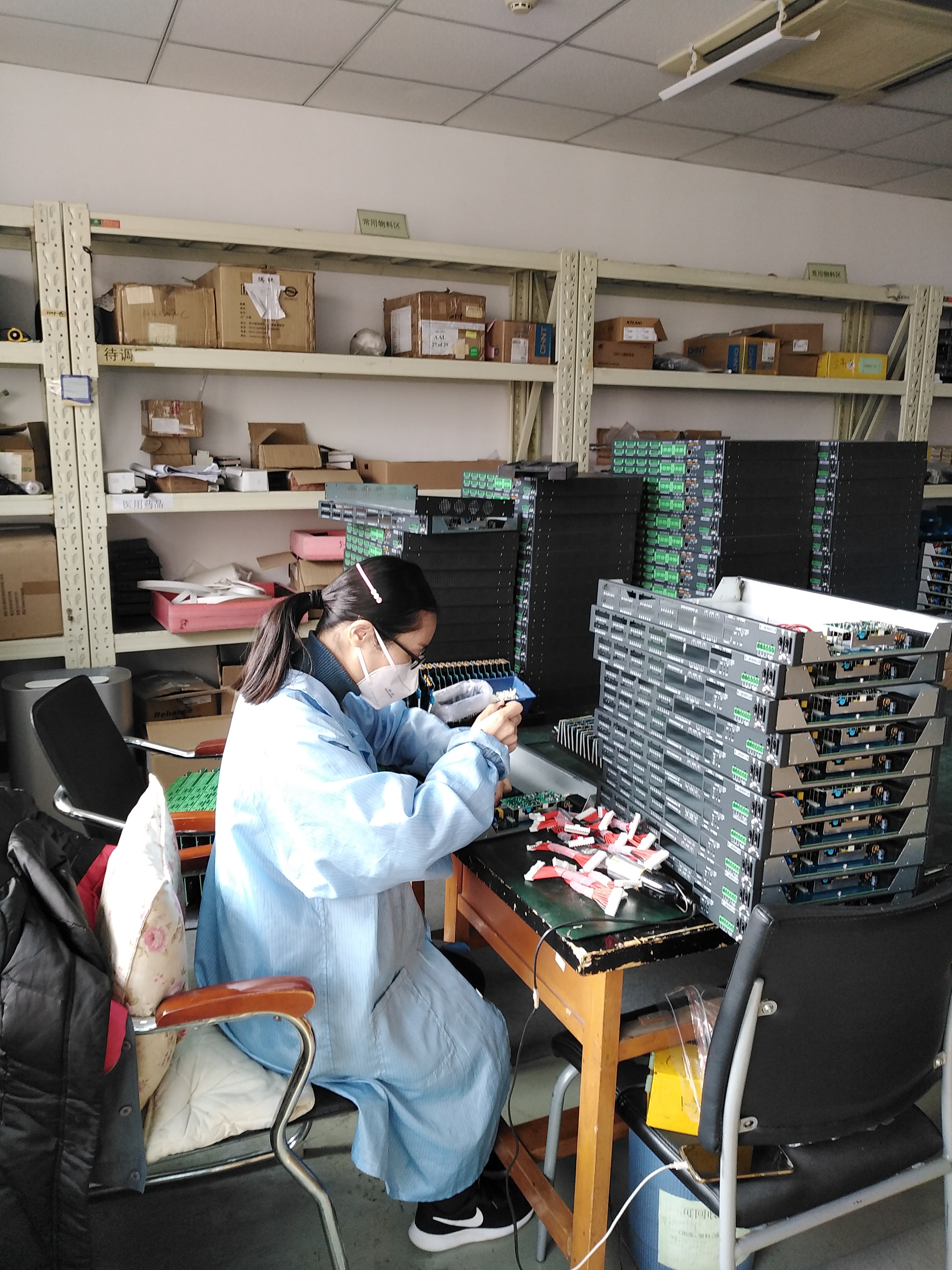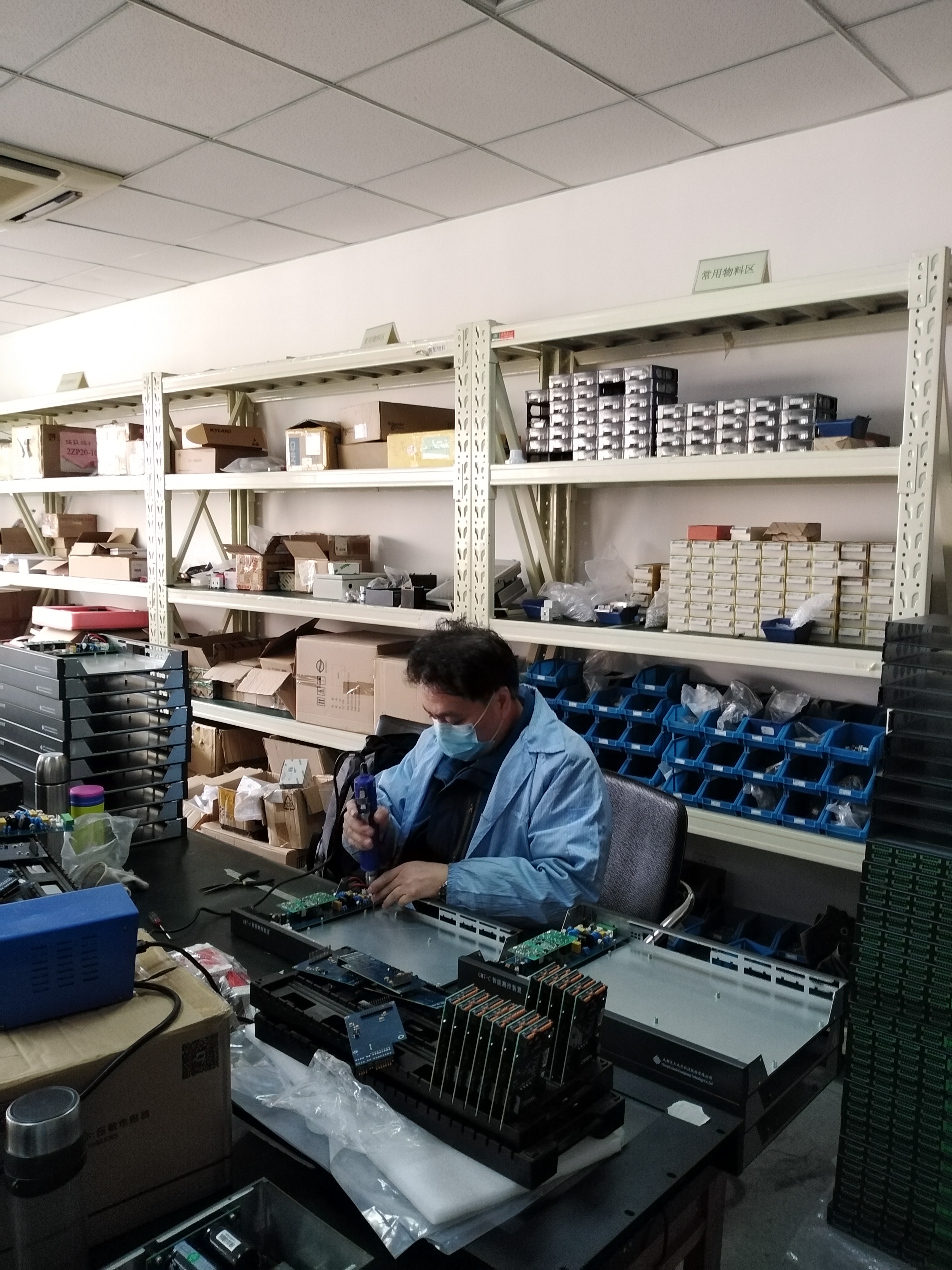 为保证各项目进度需要,公司生产供应部作为交大光芒复工复产产品物资战线的主阵地,担负着提供国铁和城市轨道供电监控系统核心产品的生产重任。以夏佐平为负责人的生产调试组,面对持续紧张的产品需求,大家没有彷徨犹豫、没有恐惧退缩,主动要求第一批复工。团队成员一个个身穿厚重的防护服,规范戴好口罩,仔细完成消杀措施,心无旁骛地坚守在工作岗位。疫情袭来,平日里车水马龙的工作园区现在显得是空旷寂静,热闹的办公室也是人员寥寥无几,面对1500套GM7-C装置的生产任务,夏佐平和生产供应部的6位同仁们锚定一颗恒心,付诸百般努力,誓要按节点完成生产交付,为铁路运输一线和疫情防控提供可靠的装备,模板调试、程序灌装、机电装配、整机测试、高温老化……,一道道精密工序在团队成员们的手里执行归位,团队协作秩序井然,确保雅万、合安九等重点项目产品的顺利按约交付。生产线上的每一根接线,每一次焊接,每一颗螺丝紧固,每一次调式数据测试,是他们对于疫情防控阻击战和企业生产经营保卫战最质朴的诠释。
