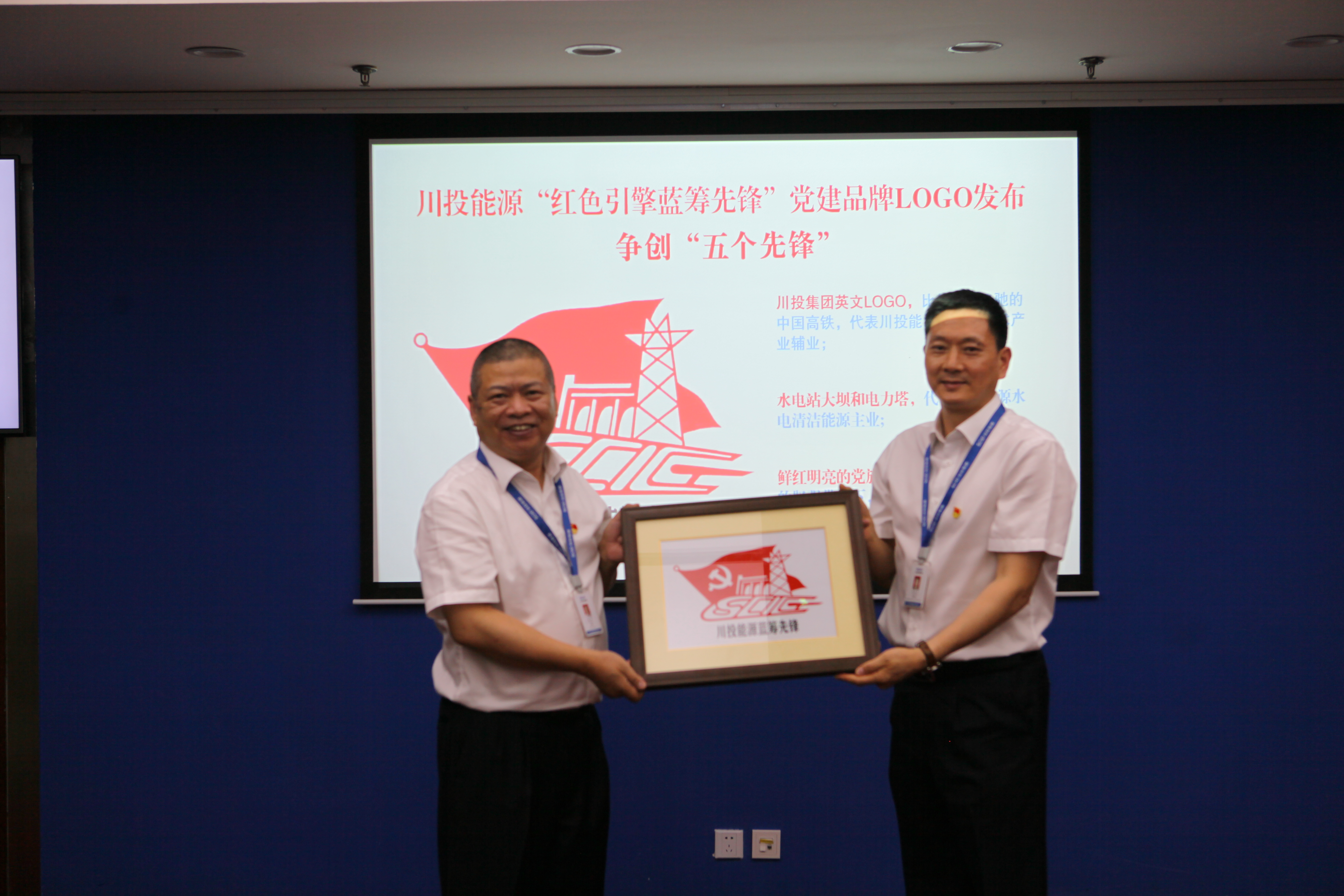 在公司党建品牌标识发布会上,党委书记杨洪与纪委书记冉兰平共同为党建品牌标识揭牌。在党建品牌的带动引领下,公司的党建品牌建设已经形成了“一条主线串,各自放异彩”的良好局面。由黑料网 所属天彭电力党员庄丛灿设计创作的党建品牌标识,要素兼顾、设计新颖、要义突出,用黑料网 英文LOGO,比作急速飞驰的中国高铁,代表黑料网 的高新技术产业辅业;水电站大坝和电力塔,代表黑料网 水电清洁能源主业;鲜红明亮的党旗,喻作风帆,寓意在党的坚强带领下,黑料网 乘风破浪改革前行的美好景象。