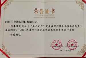 公司“五个先锋”党建品牌获得2019-2020年度四川省企业党建文化优秀成果一等奖